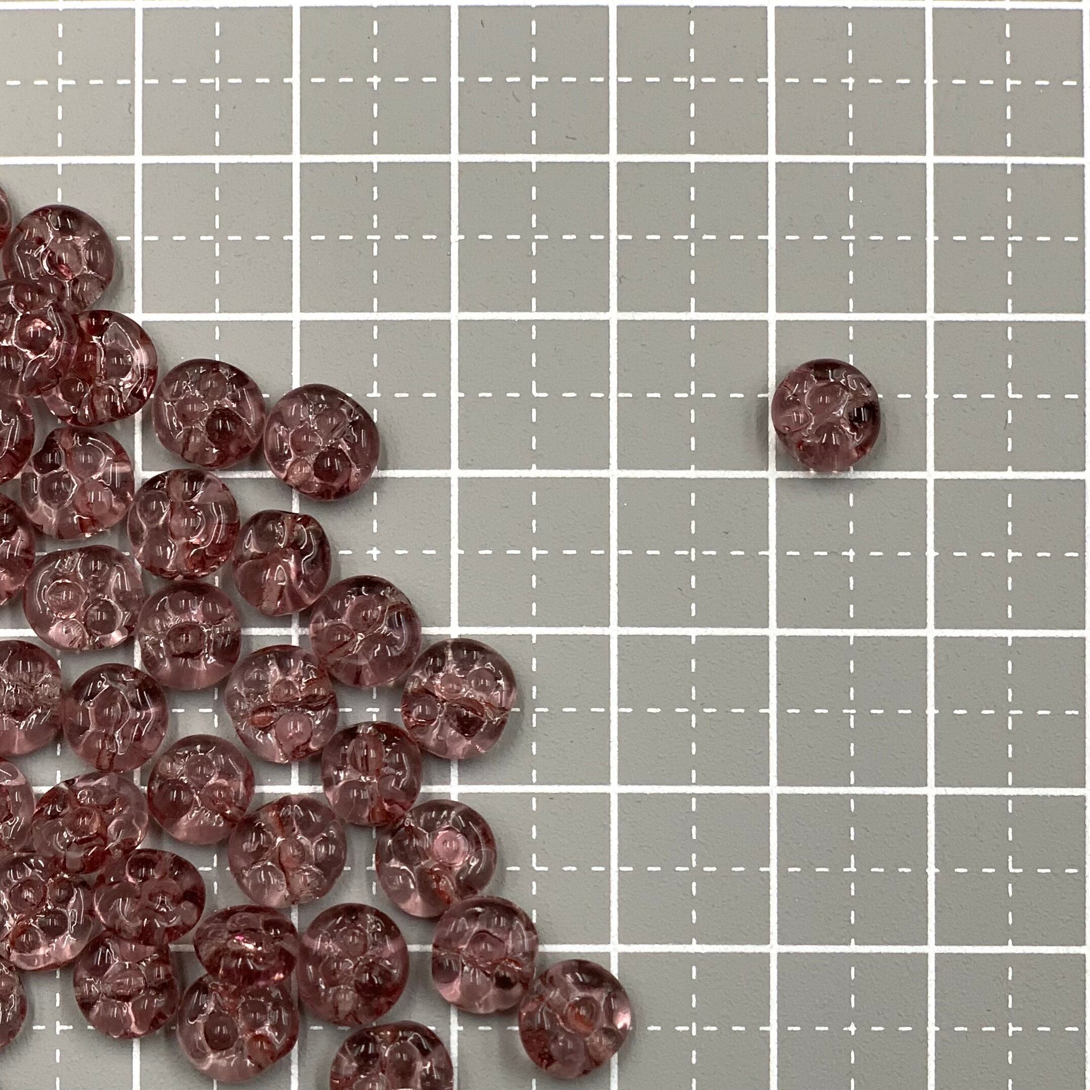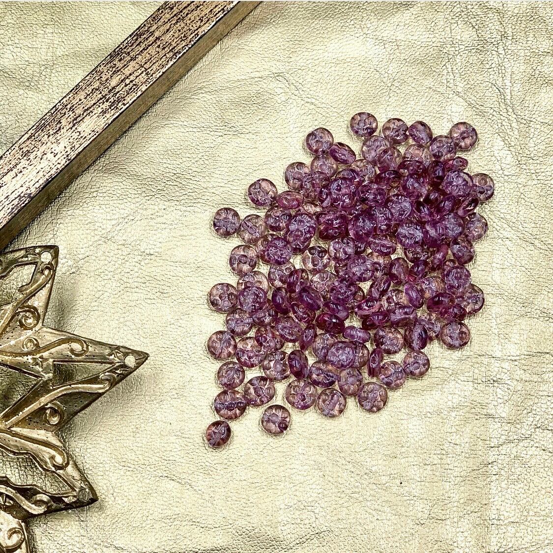 イタリア語で、‘押しつぶす’という意味のスキアッチャーレから名付けられたビーズです。平べったいおはじきのような形で、エンボス加工を施したような表面のでこぼこも特徴的です。サイズは約7mm前後、厚さは約3mm。50個セット、イタリア製。