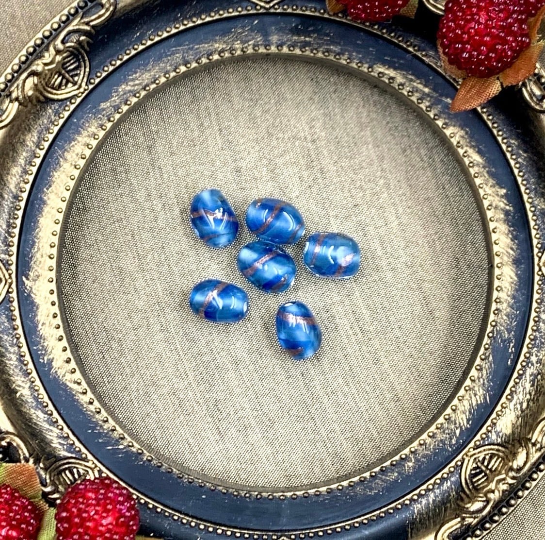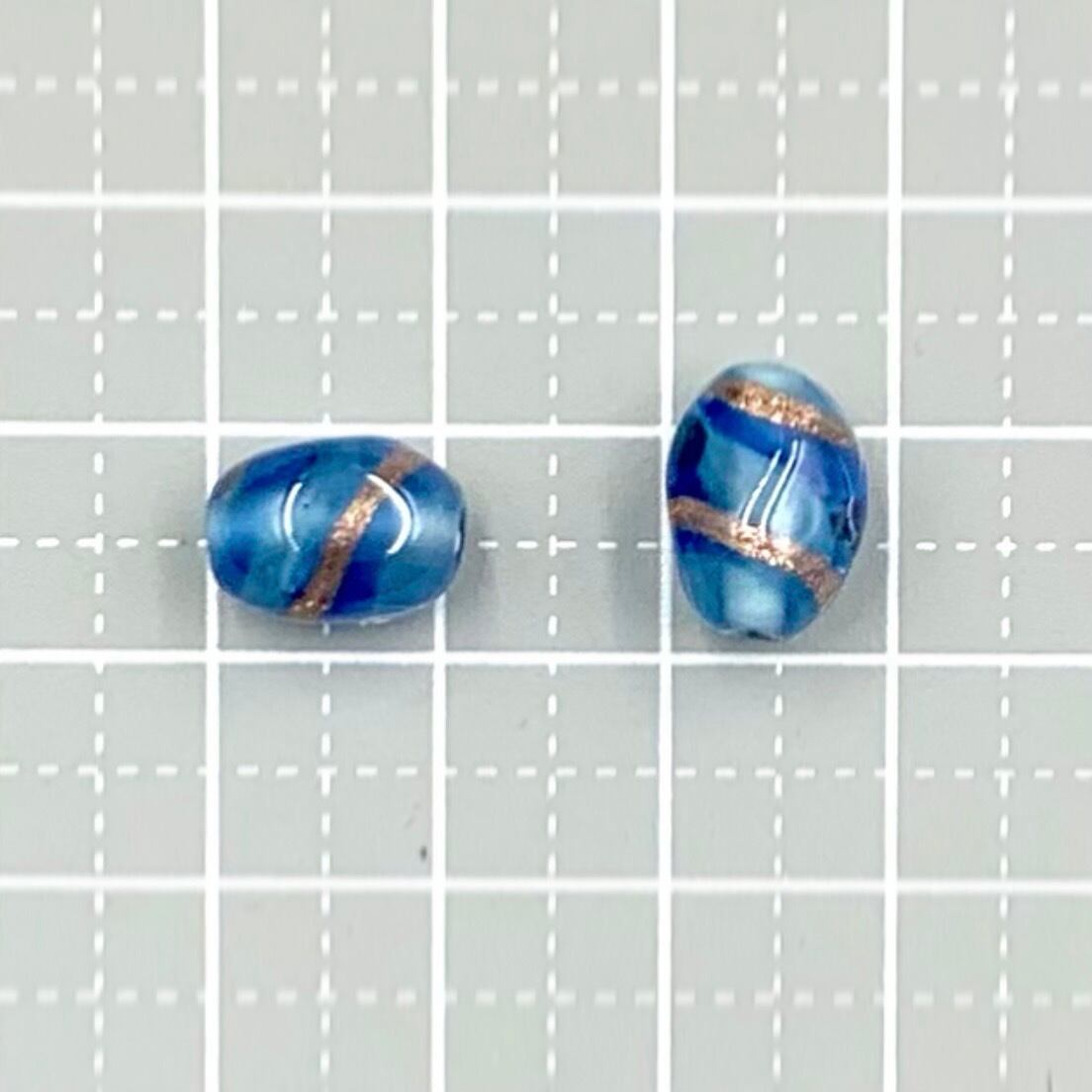 チェコ製のランプワークビーズです。約11×8mmの使いやすいサイズです。1mmの紐が十分通ります。6個セット。