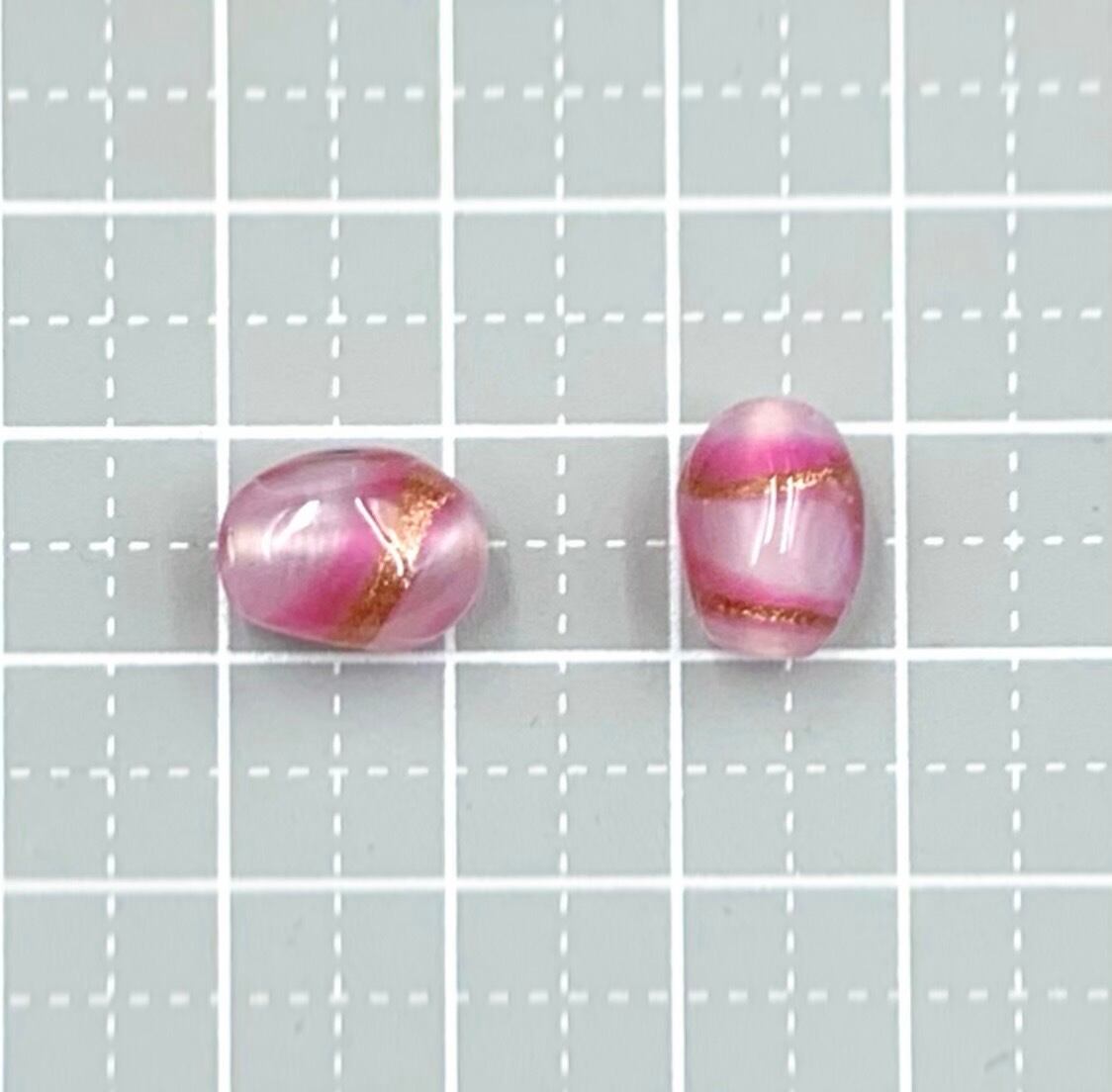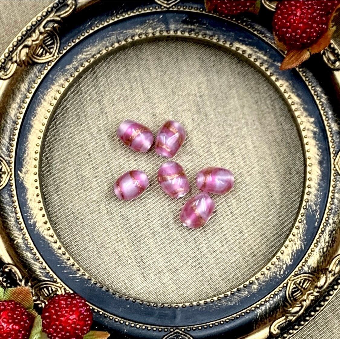 チェコ製のランプワークビーズです。約11×8mmの使いやすいサイズです。1mmの紐が十分通ります。6個セット。