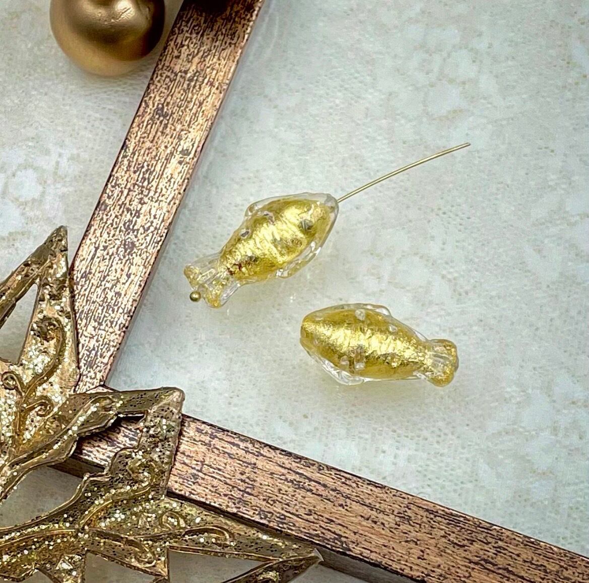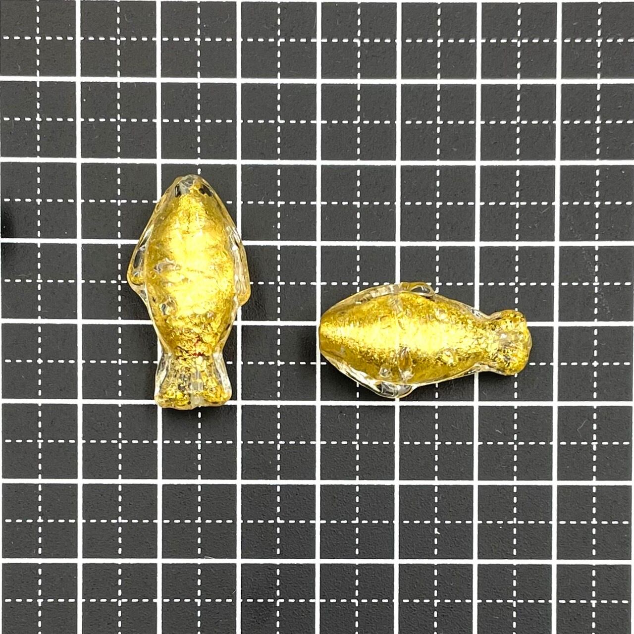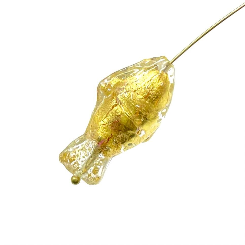 ヴェネチアンならではの、魚の形のビーズです。金箔入り、サイズは縦約27mm、個体差があります。2個セット(2粒のサイズは、揃えてお入れします)。イタリア製。