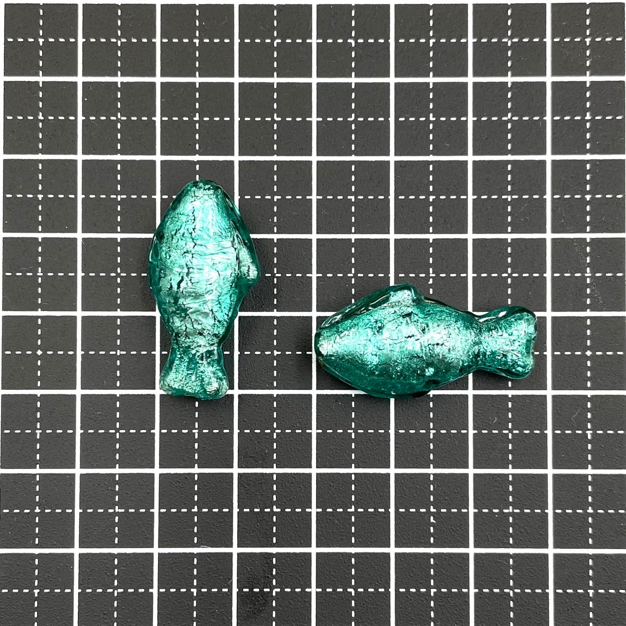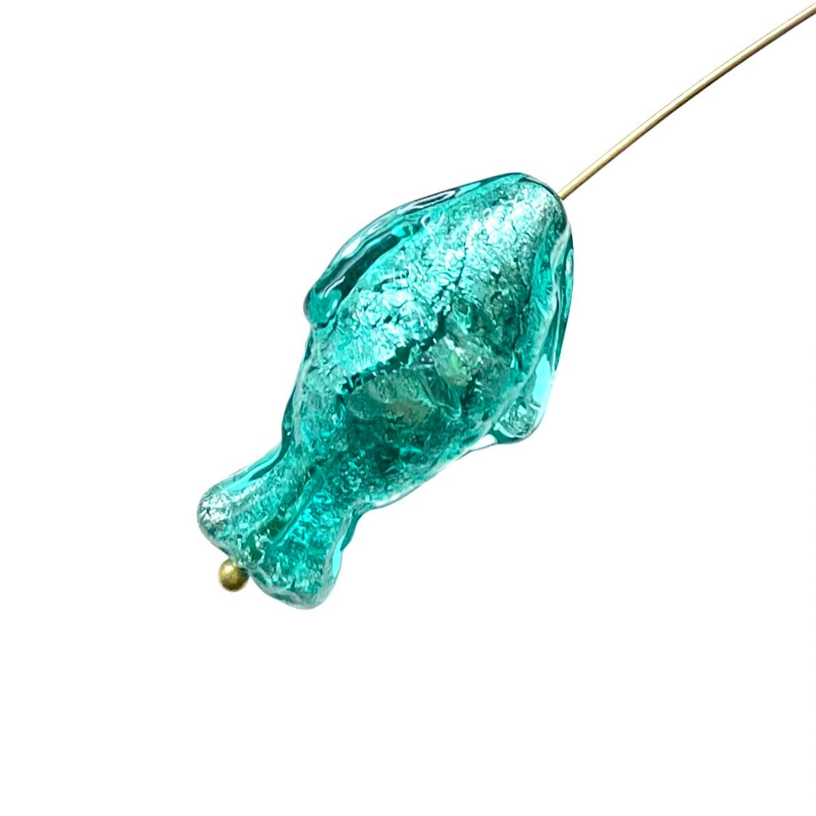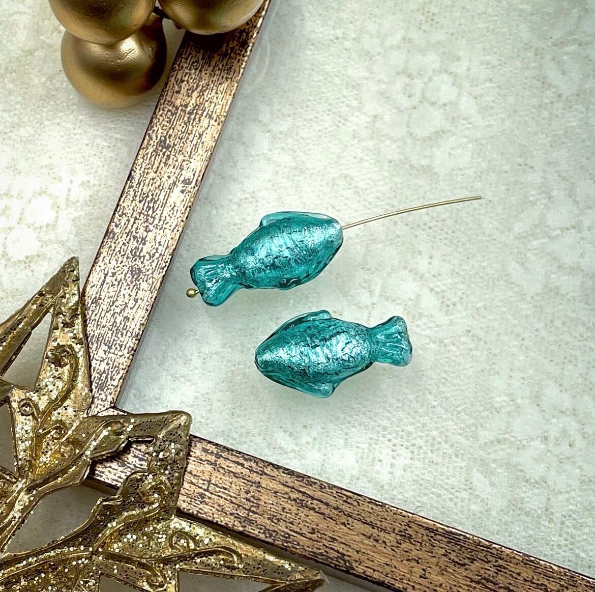 ヴェネチアンならではの、魚の形のビーズです。WG箔入り、サイズは縦約27mm、個体差があります。2個セット(2粒のサイズは、揃えてお入れします)。イタリア製。