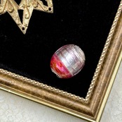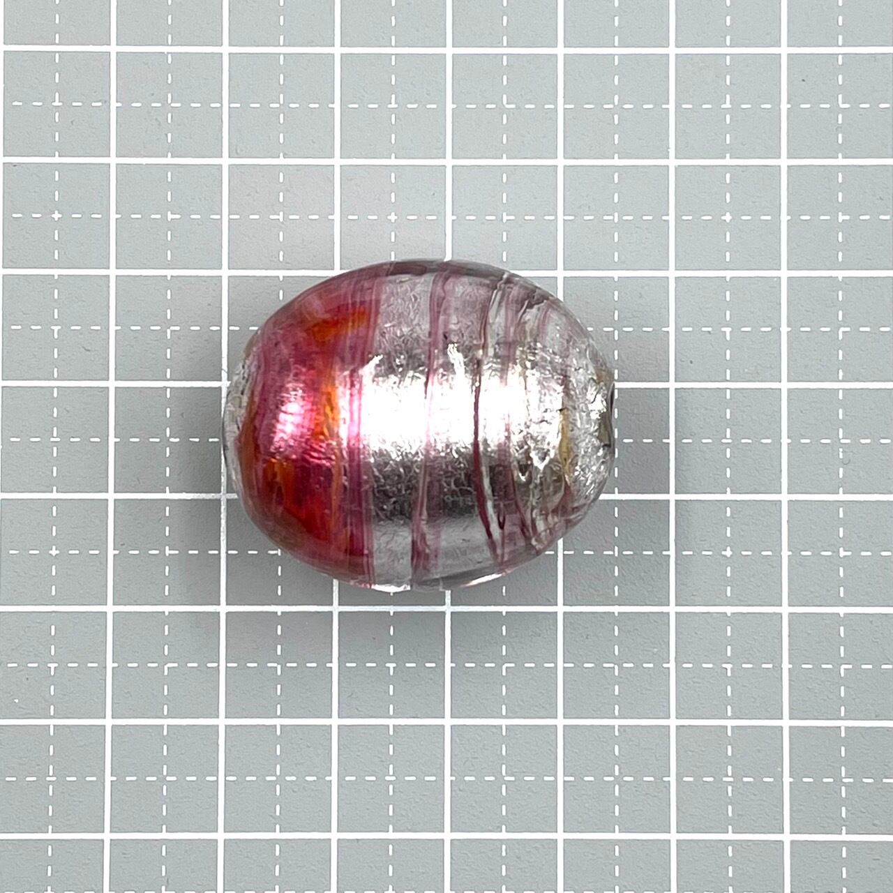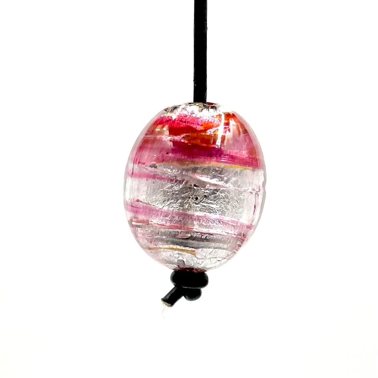 様々な表情を見せてくれるヴェネチアンの大玉です。即興的に作られたものなので、同じ色味を再び作ることはできません。縦約35mm、重さ33g(ずっしり重いパーツです)。2.5mmの革紐が通ります。イタリア製。