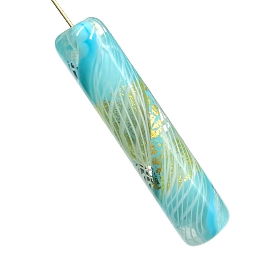 レースガラスと金箔を組み合わせた、独特の深みを持ったビーズです。Tピンでヘッド加工するだけで、豪華なペンダントトップが出来上がります✨。縦約3.9cmの円柱型です。イタリア製。