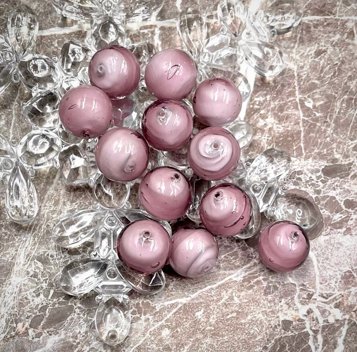 ヴェネチアンビーズの14mm丸玉、不良品ではないのですが、気泡の入り方などに個体差がありすぎる為、12個セットで格安の¥1100での出品です。イタリア製。
