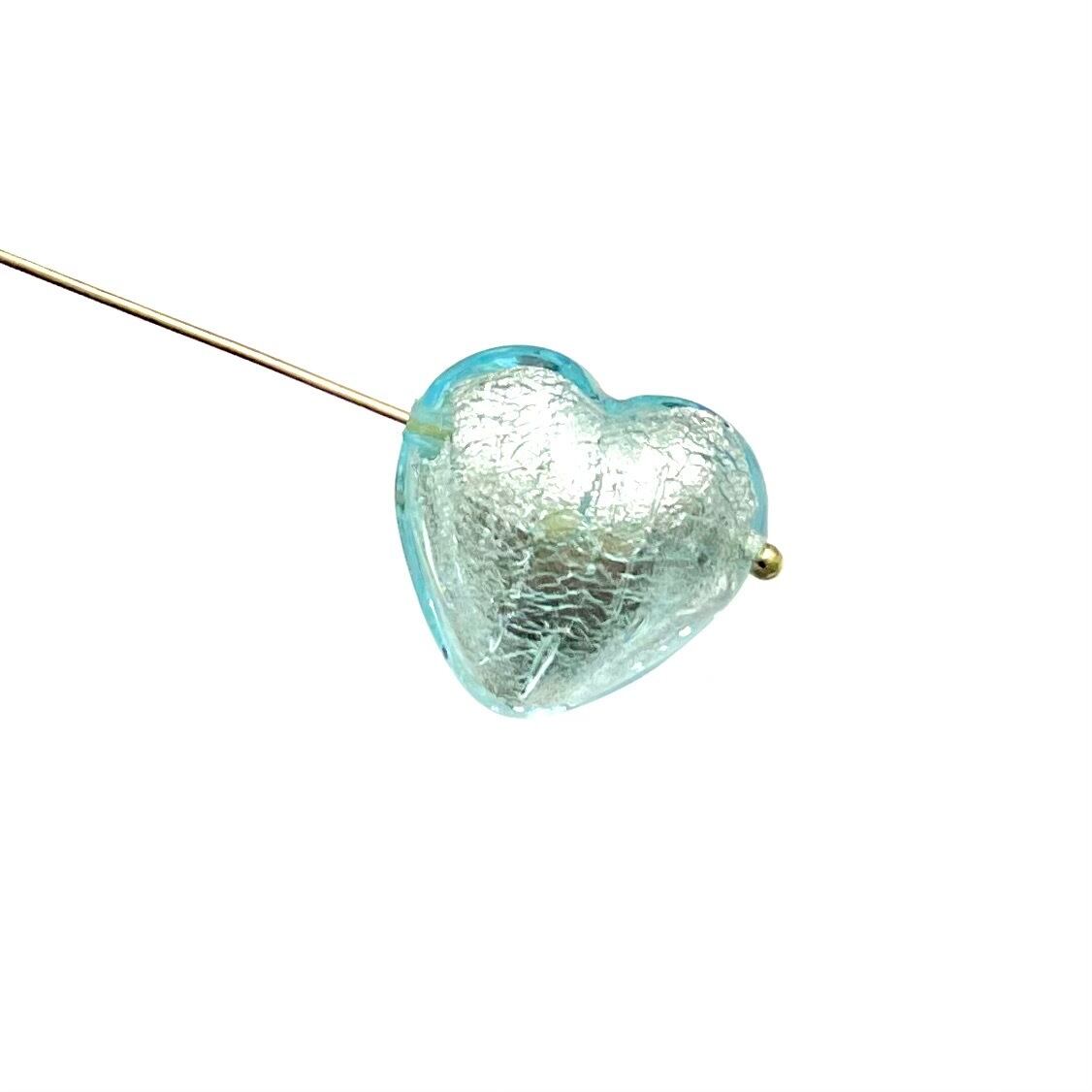 横穴の箔入りハートビーズです。リング作りやワイヤーワークなど、縦穴とは違ったデザインが作れます。約15mmサイズ、イタリア製。1個単位での販売です。