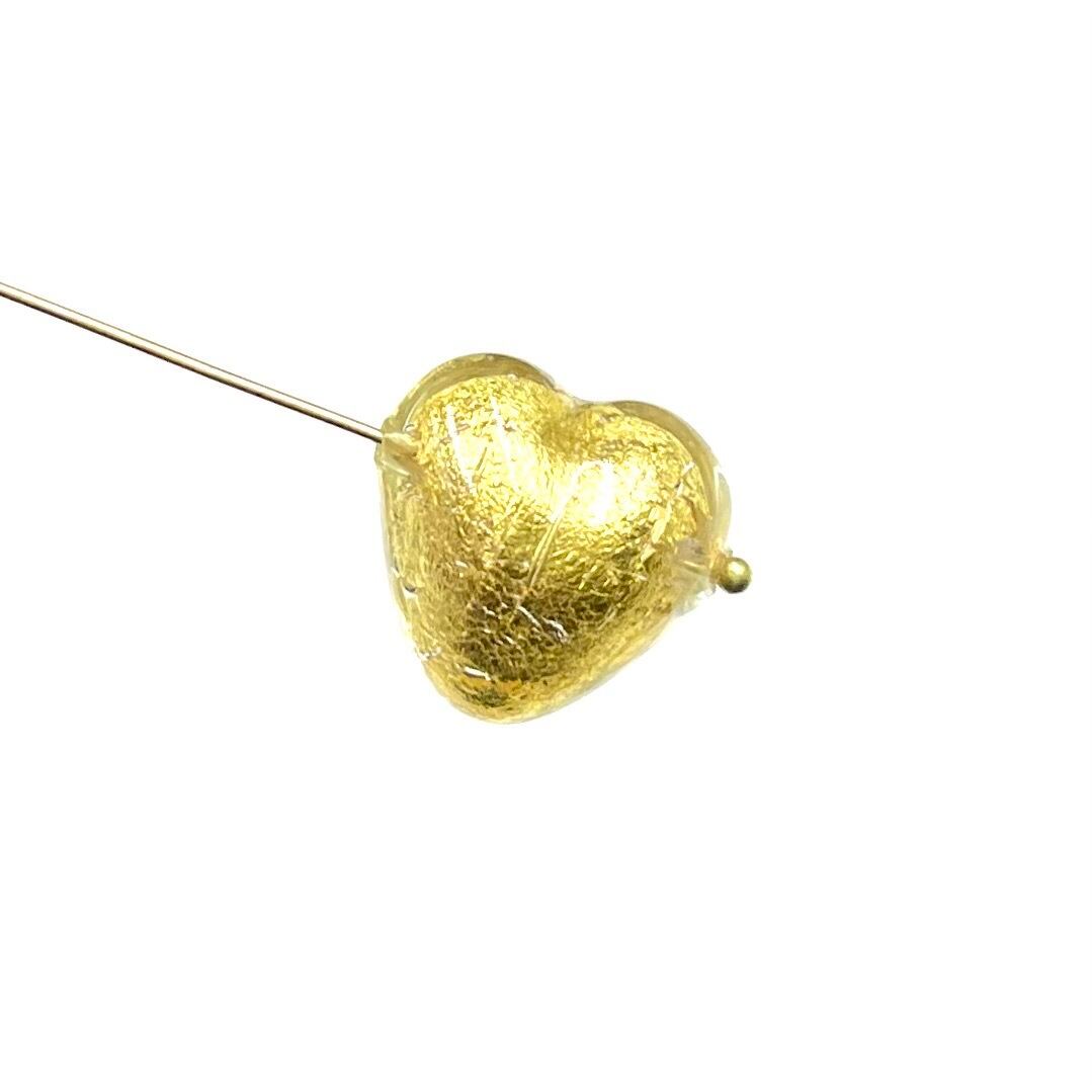横穴の箔入りハートビーズです。リング作りやワイヤーワークなど、縦穴とは違ったデザインが作れます。約15mmサイズ、イタリア製。1個単位での販売です。