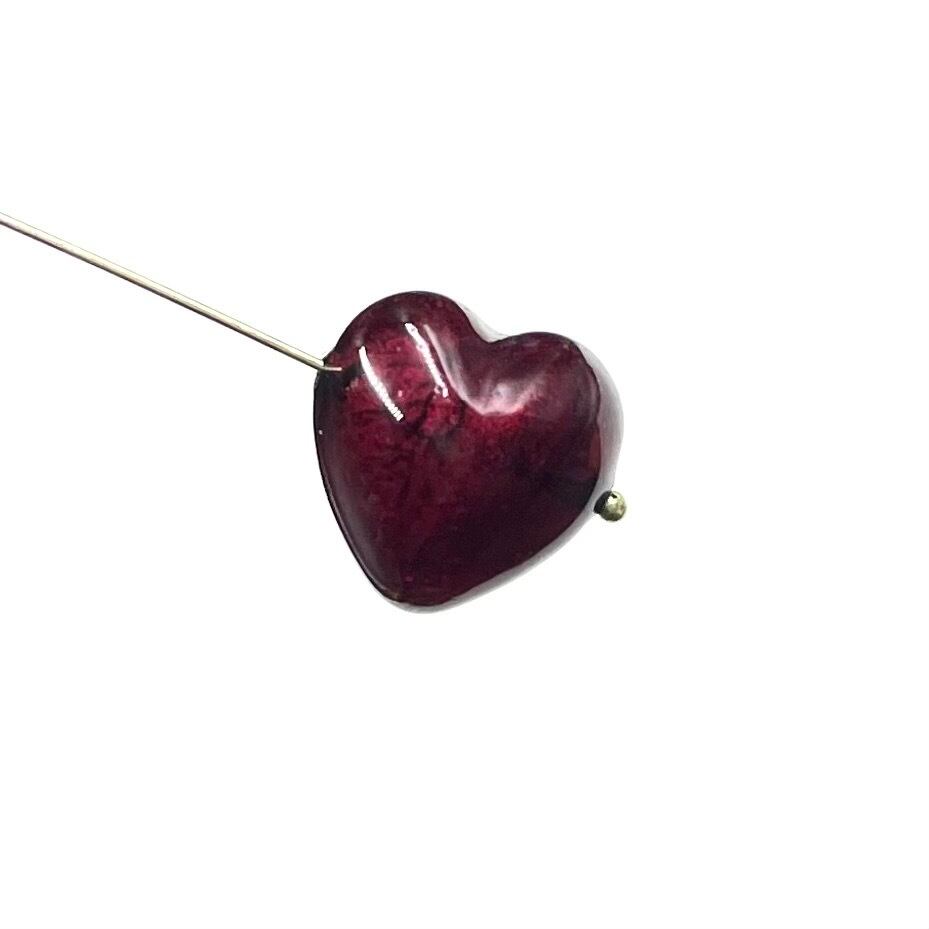 横穴の箔入りハートビーズです。リング作りやワイヤーワークなど、縦穴とは違ったデザインが作れます。約15mmサイズ、イタリア製。1個単位での販売です。