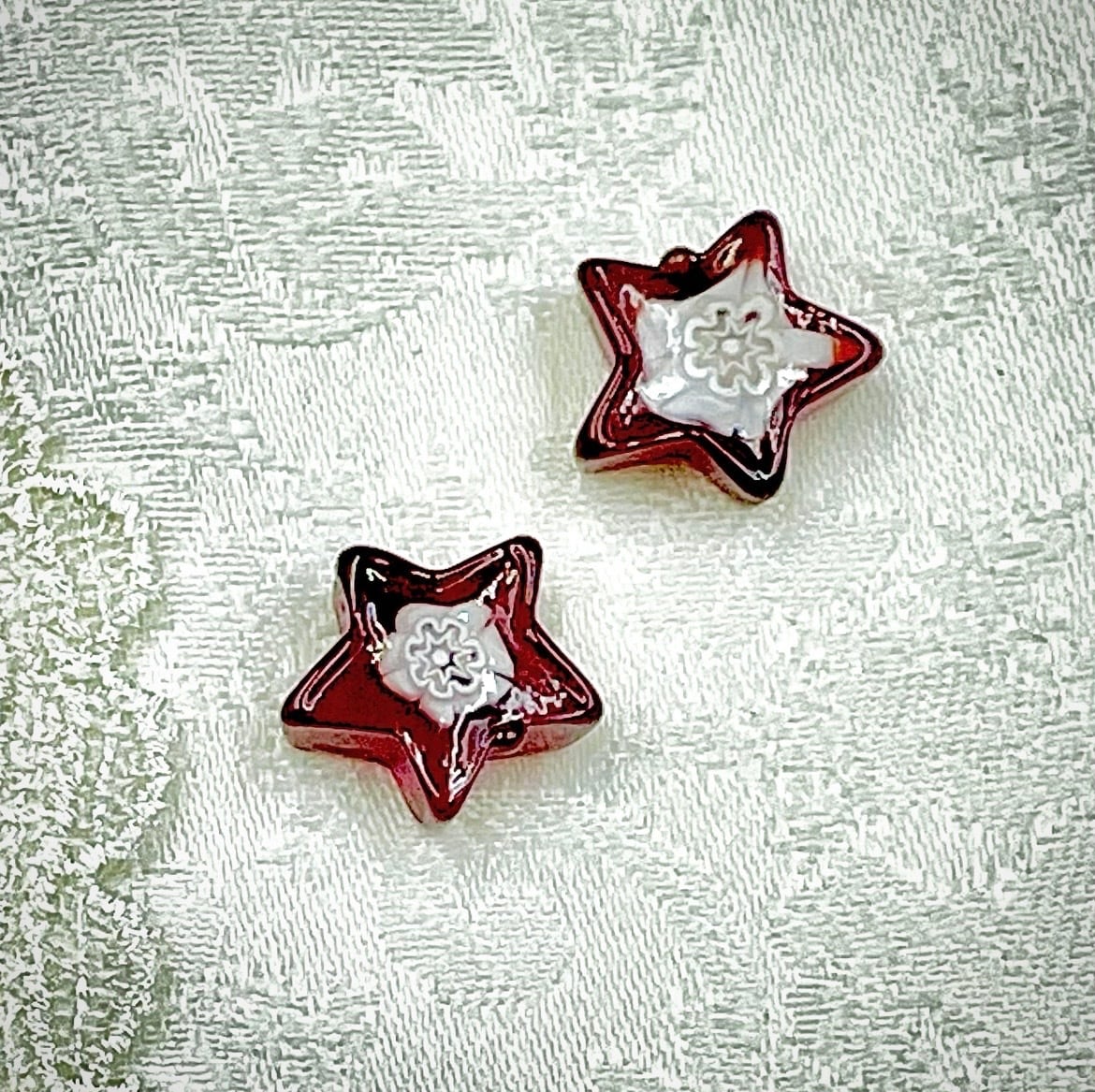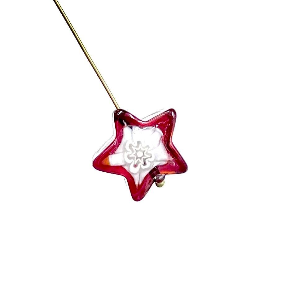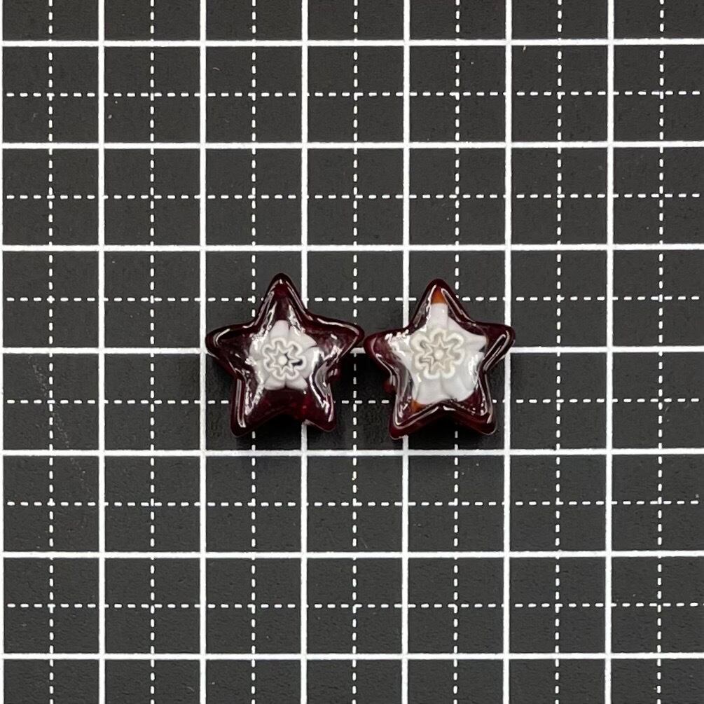 ヴェネチアンの人気モチーフの一つ、星型のビーズです。白い花型のモザイコが埋め込まれています。モザイコは片面のみ、裏面は無地です(3枚目画像)。サイズは約15mm、2個セット。イタリア製。