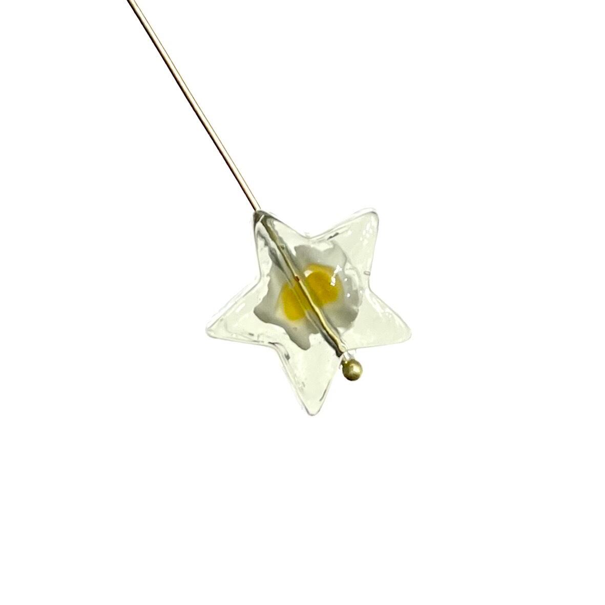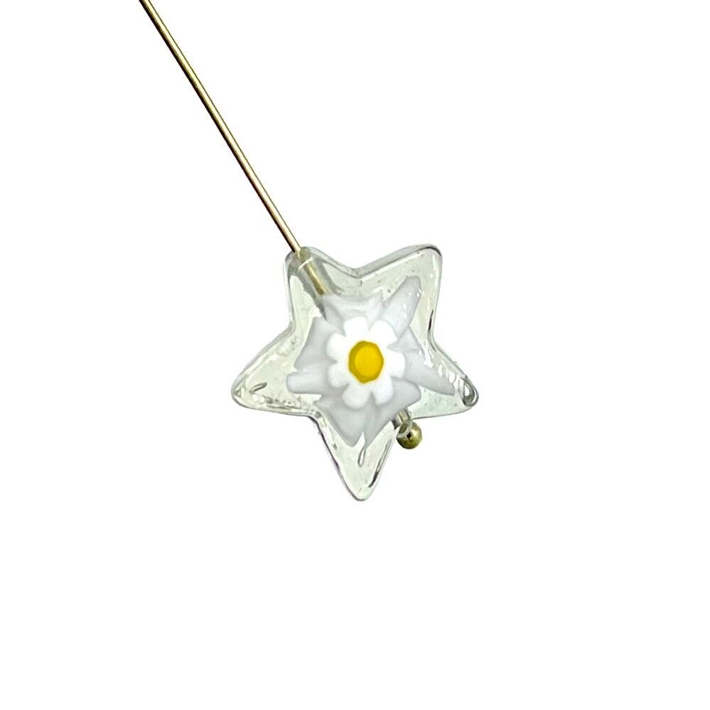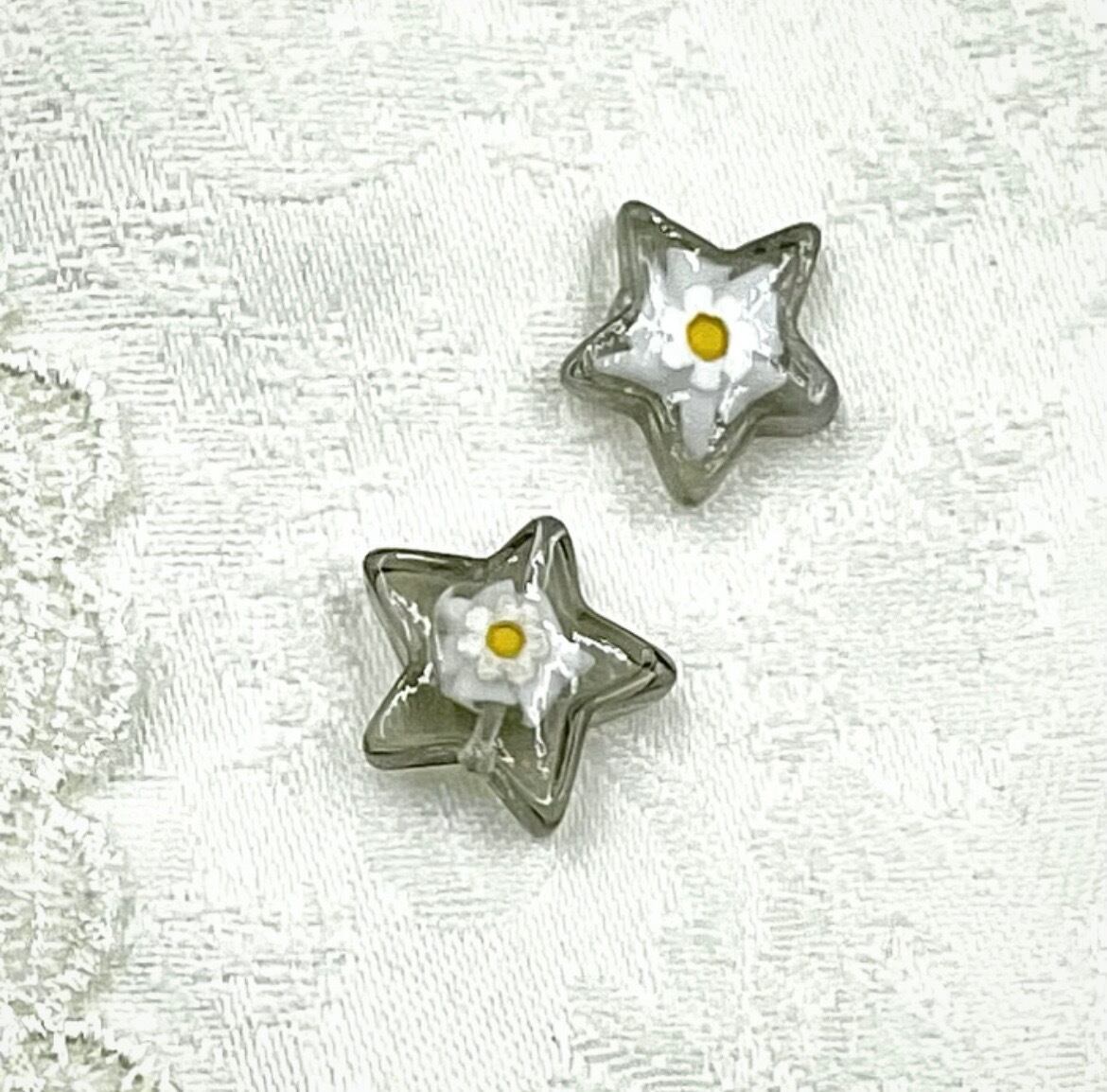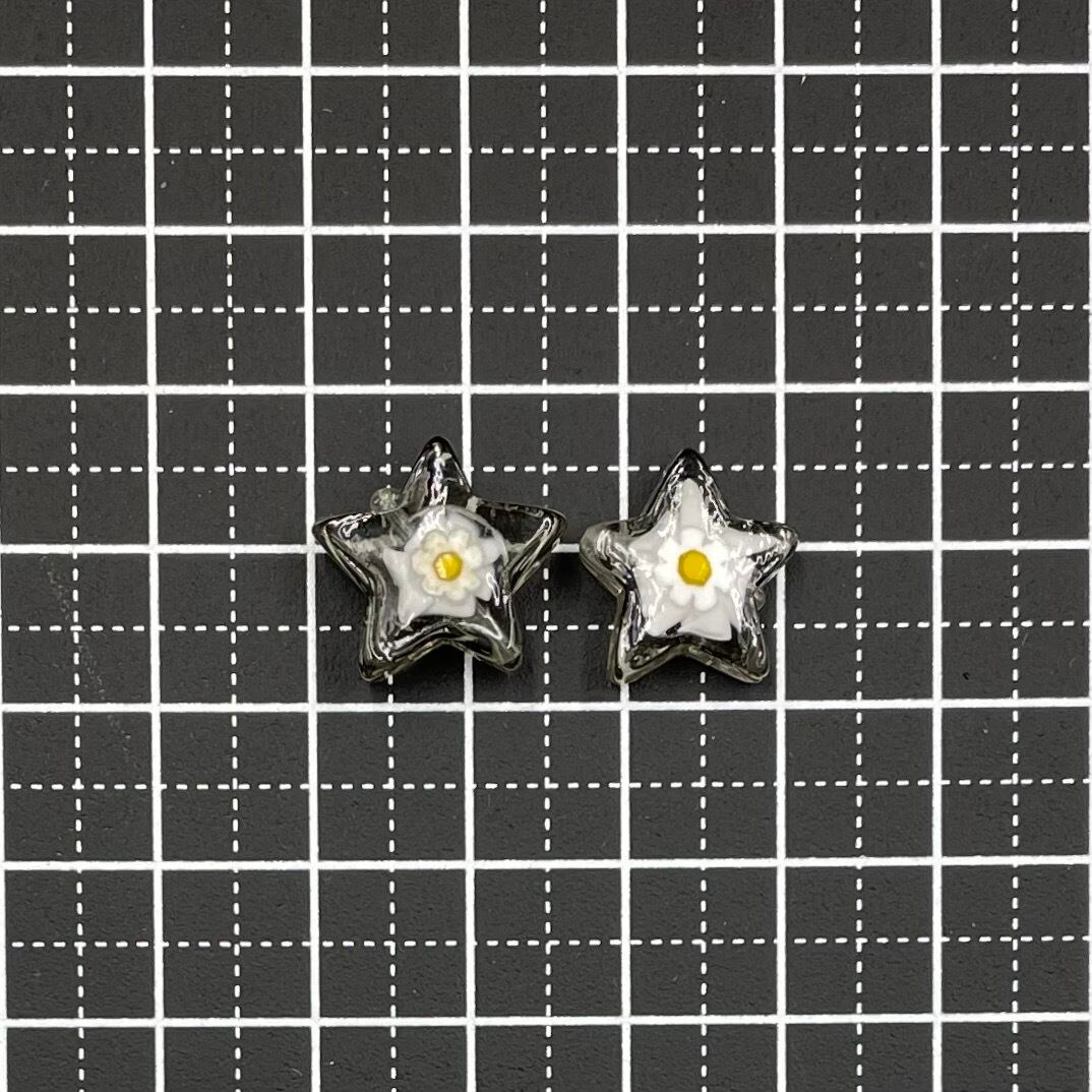 ヴェネチアンの人気モチーフの一つ、星型のビーズです。マルゲリータ模様のモザイコが埋め込まれています。モザイコは片面のみ、裏面は無地です(3枚目画像)。サイズは約15mm、2個セット。イタリア製。