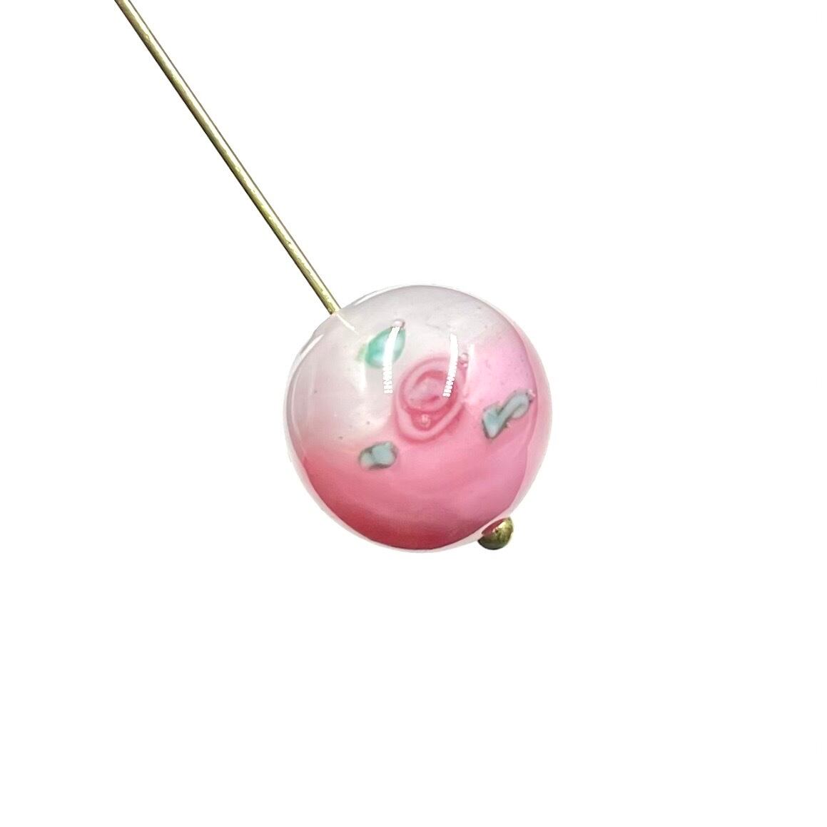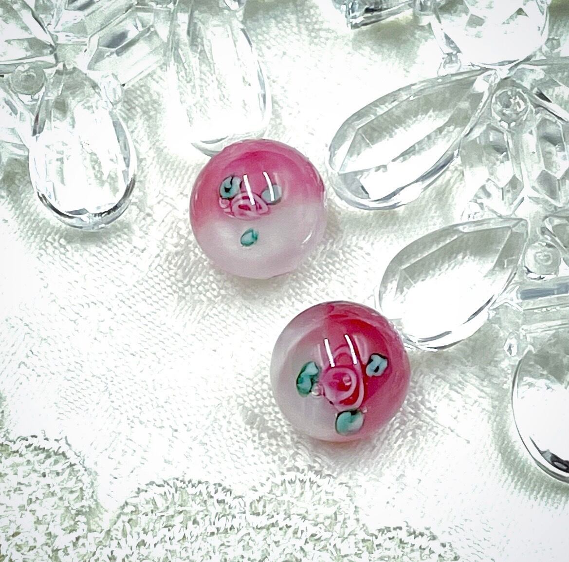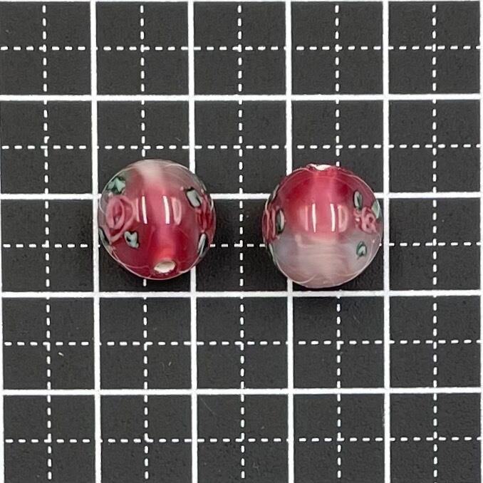 チェコ製のランプワークビーズ、代表的なローズ柄です。2色使いがとても可愛らしいです。12mmサイズで、多用途に使えます。2個セット。