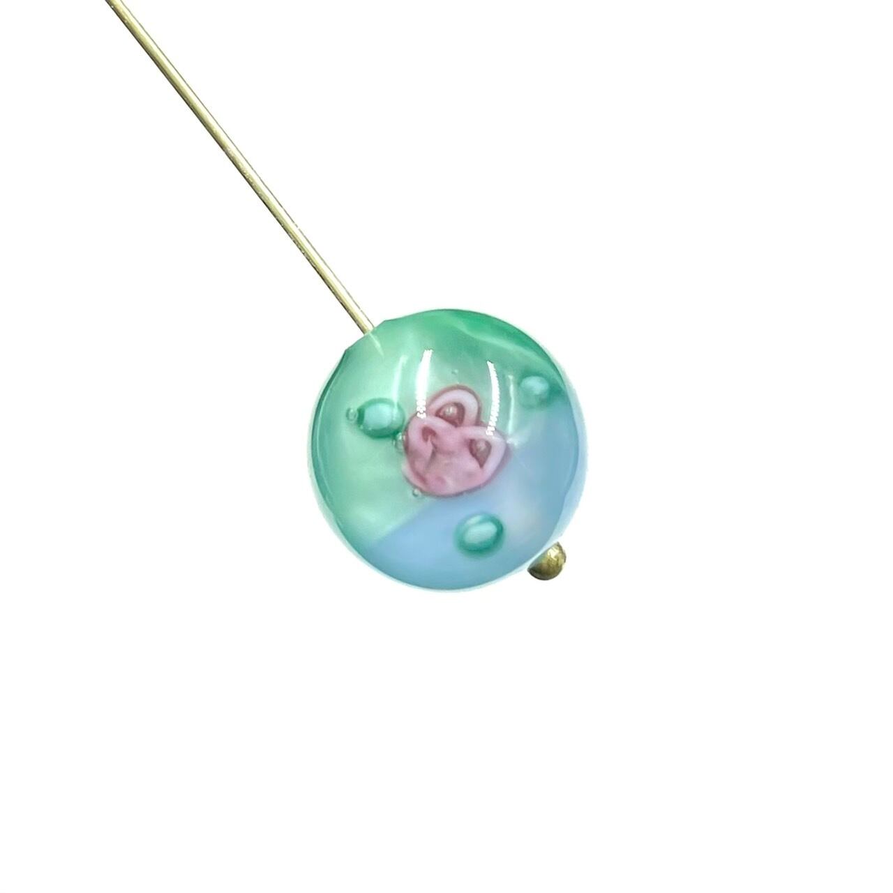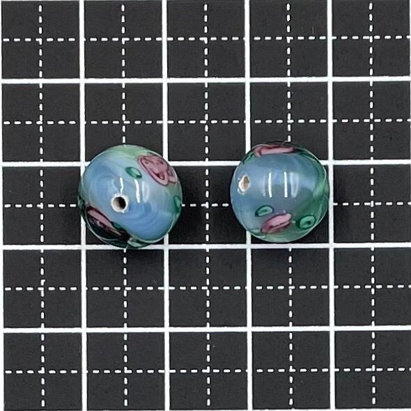 チェコ製のランプワークビーズ、代表的なローズ柄です。2色使いがとても可愛らしいです。12mmサイズで、多用途に使えます。2個セット。