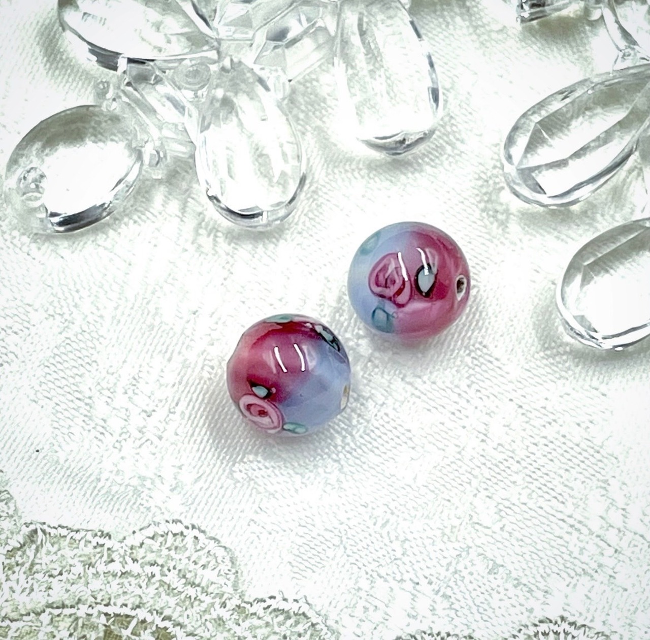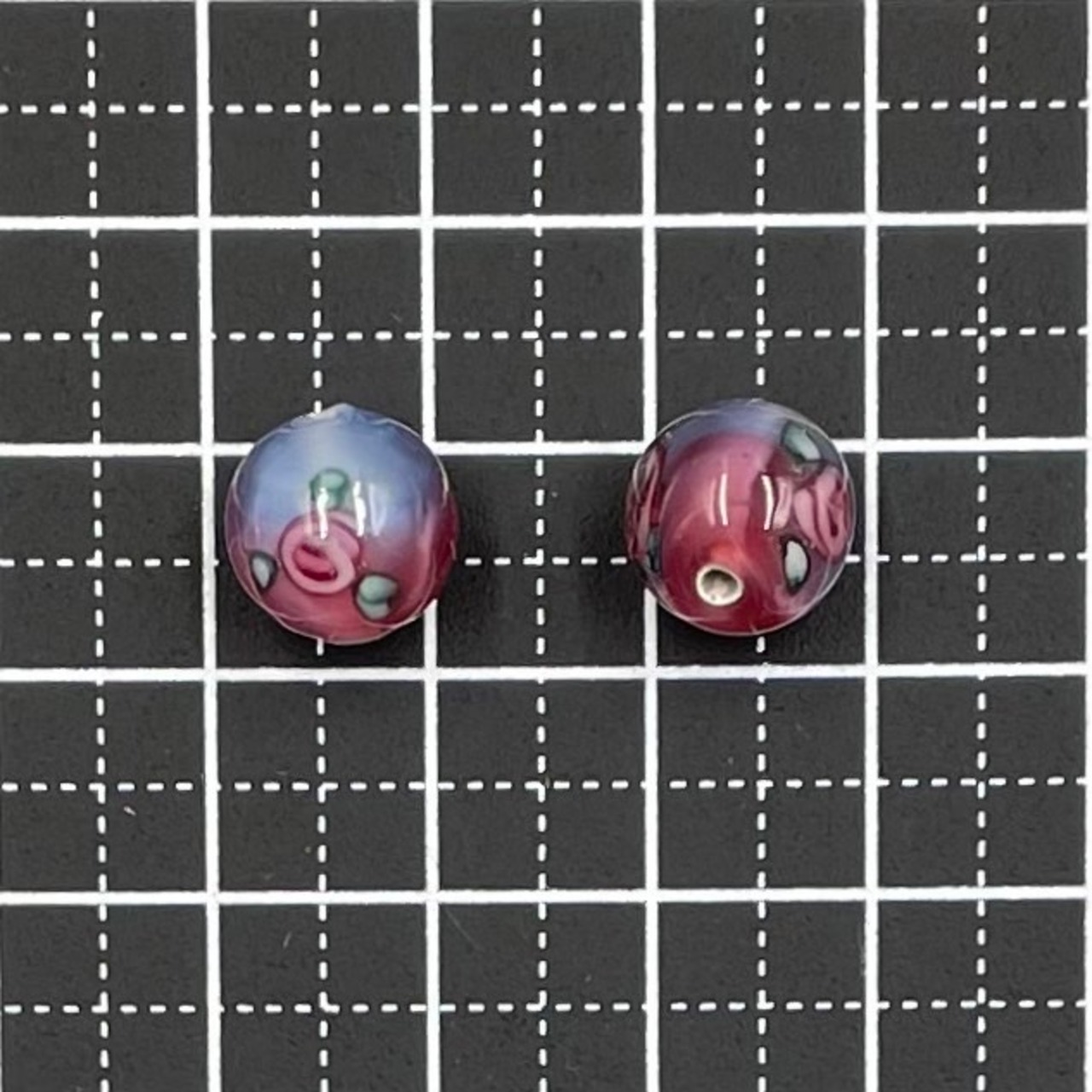チェコ製のランプワークビーズ、代表的なローズ柄です。2色使いがとても可愛らしいです。10mmサイズは、イヤリング·ピアスに最適です。2個セット。