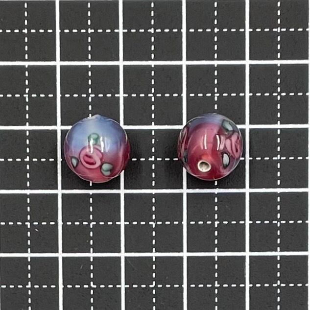 チェコ ランプビーズ バイカラー ローズ丸玉 10mm 2個セット ピンク&ブルー