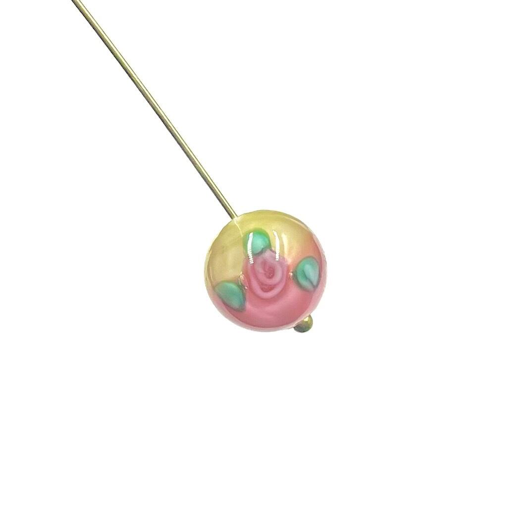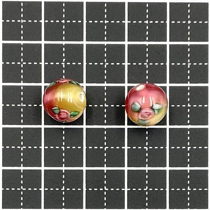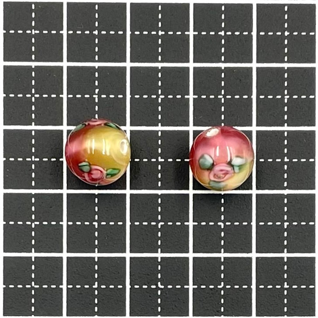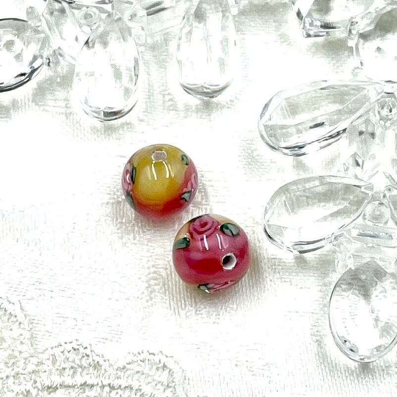 チェコ製のランプワークビーズ、代表的なローズ柄です。2色使いがとても可愛らしいです。10mmサイズは、イヤリング·ピアスに最適です。2個セット。