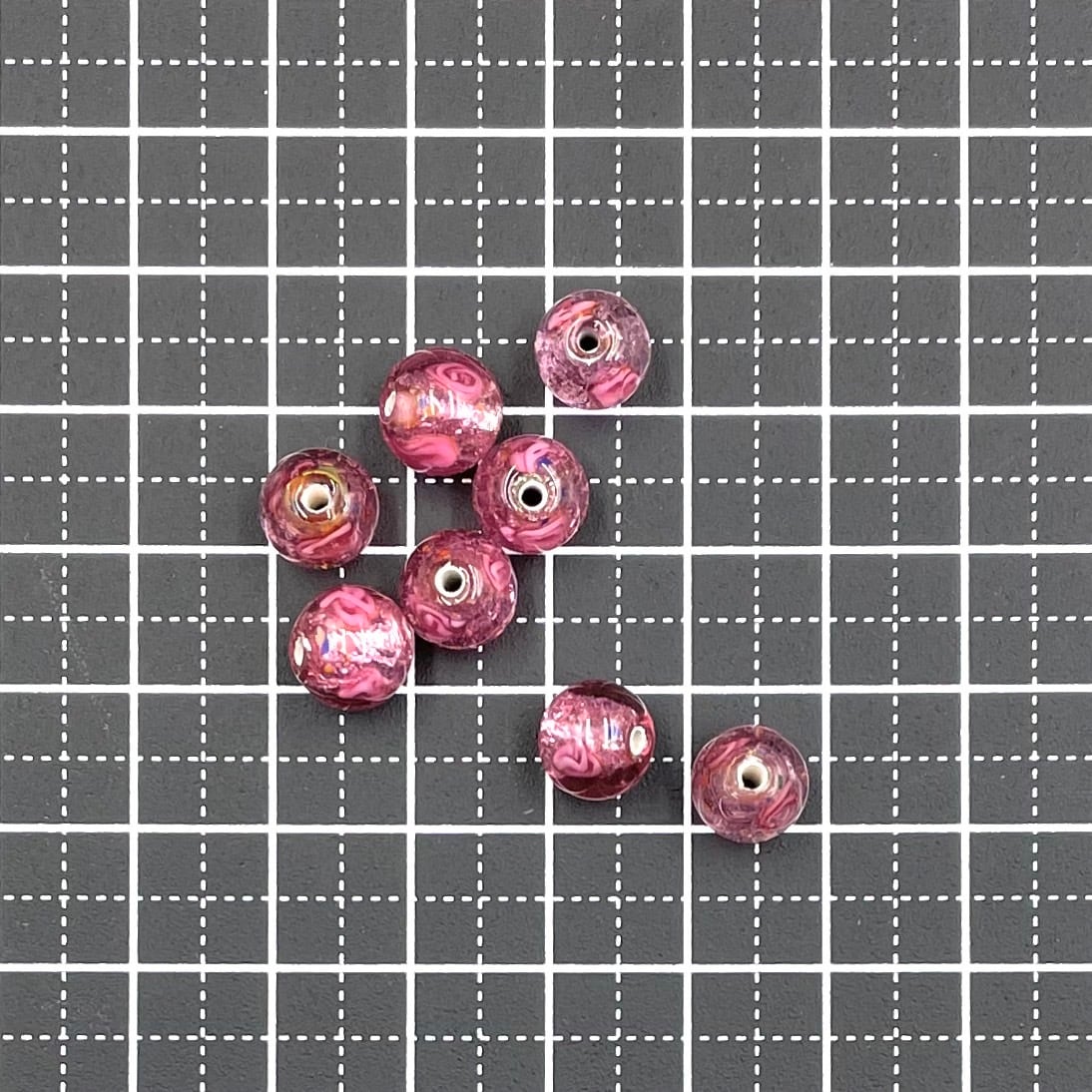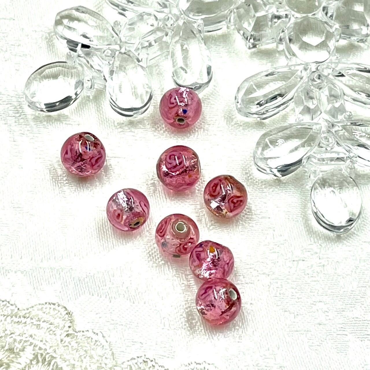 チェコ ランプビーズ ローズフォイル 8mm丸玉   8個セット ピンク
