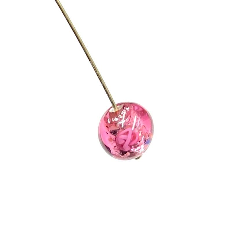 チェコ製のランプワークビーズ、代表的なローズ柄です。芯にフォイルを巻いた、独特の雰囲気のあるビーズです。イヤリング·ピアスだけでなく、ネックレスやブレスレットにも使いやすい8mmサイズ、8個セット。
