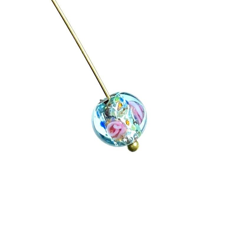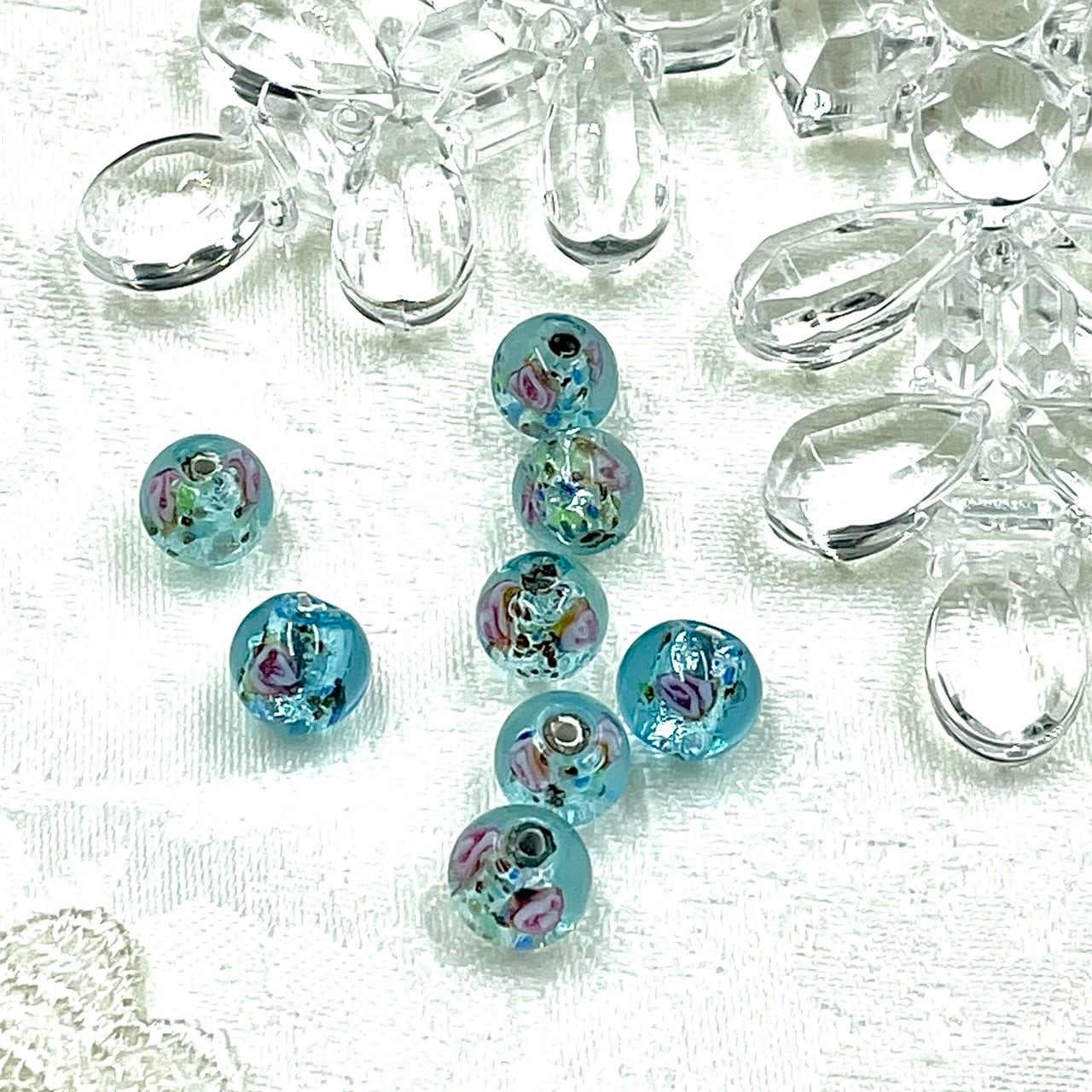 チェコ製のランプワークビーズ、代表的なローズ柄です。芯にフォイルを巻いた、独特の雰囲気のあるビーズです。イヤリング·ピアスだけでなく、ネックレスやブレスレットにも使いやすい8mmサイズ、8個セット。
