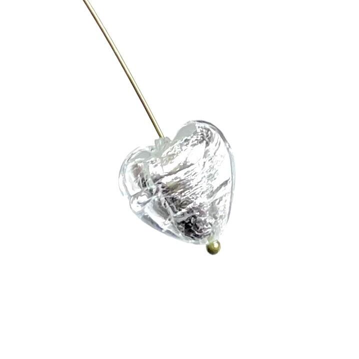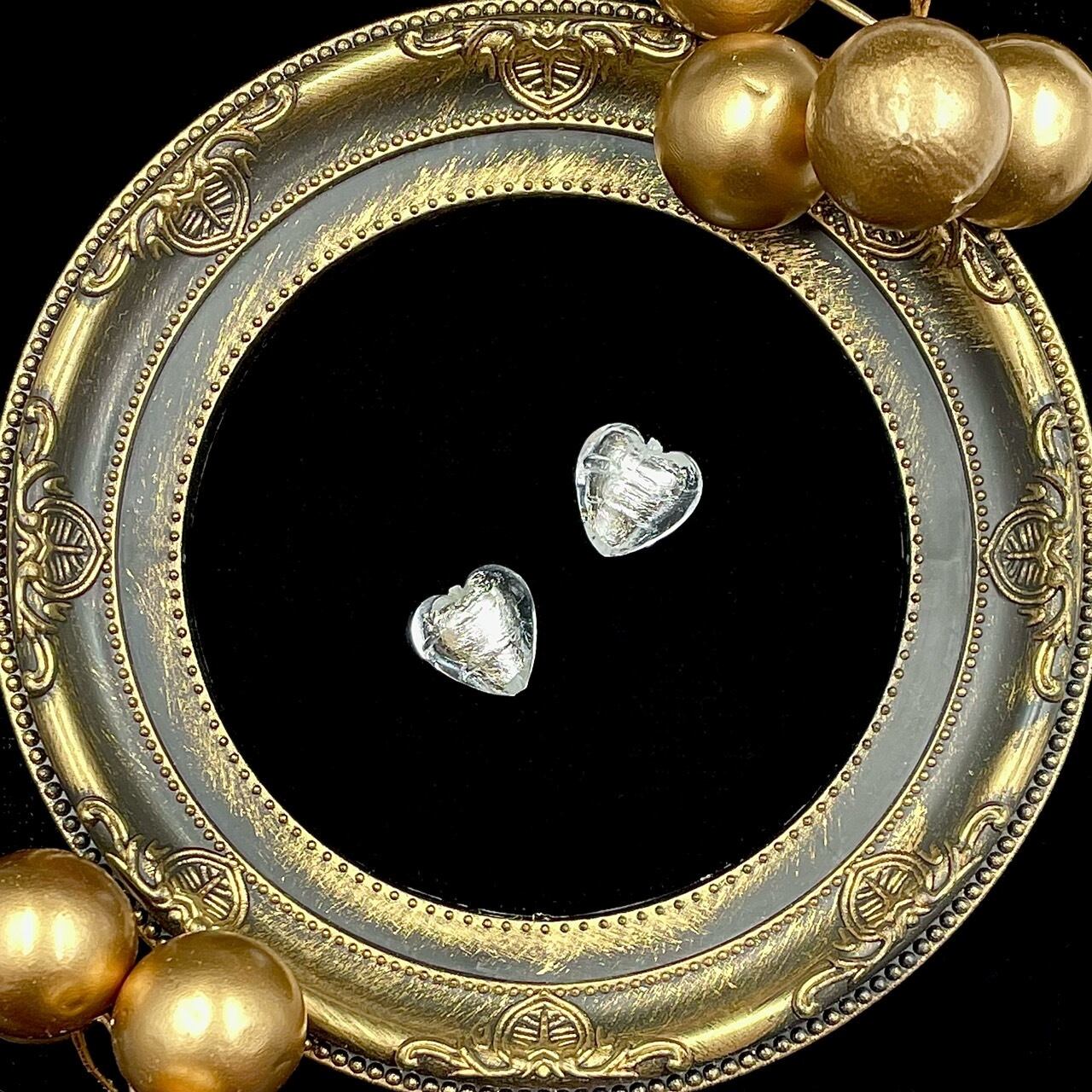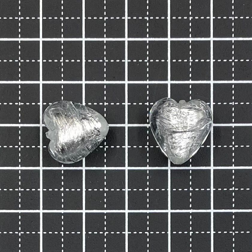 ヴェネチアン 箔入りハート 15×15mm  2個セット  シルバー