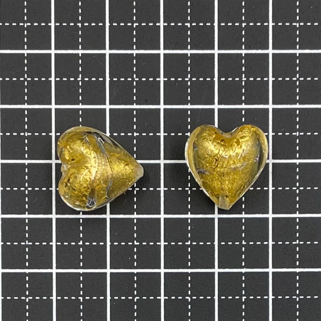 ヴェネチアンの人気モチーフ、ハート型です。15×15mmの、やや大きめサイズです。ペンダントトップや、大きめのイヤリング、ピアスに。2個セット。イタリア製。