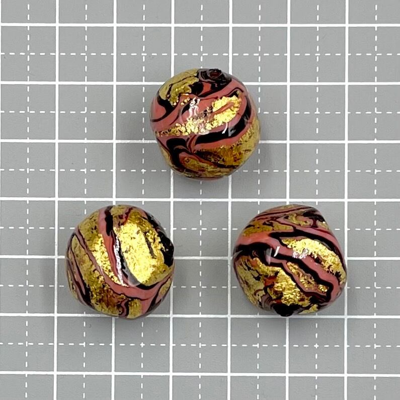 油絵のような、アート系のヴェネチアンビーズです。こぶしのようなユニークな形をしています。3個セット。サイズは約2cm、イタリア製。1セット限りの限定品です。