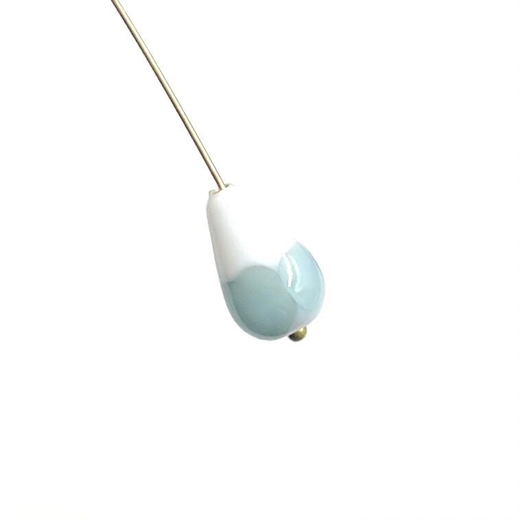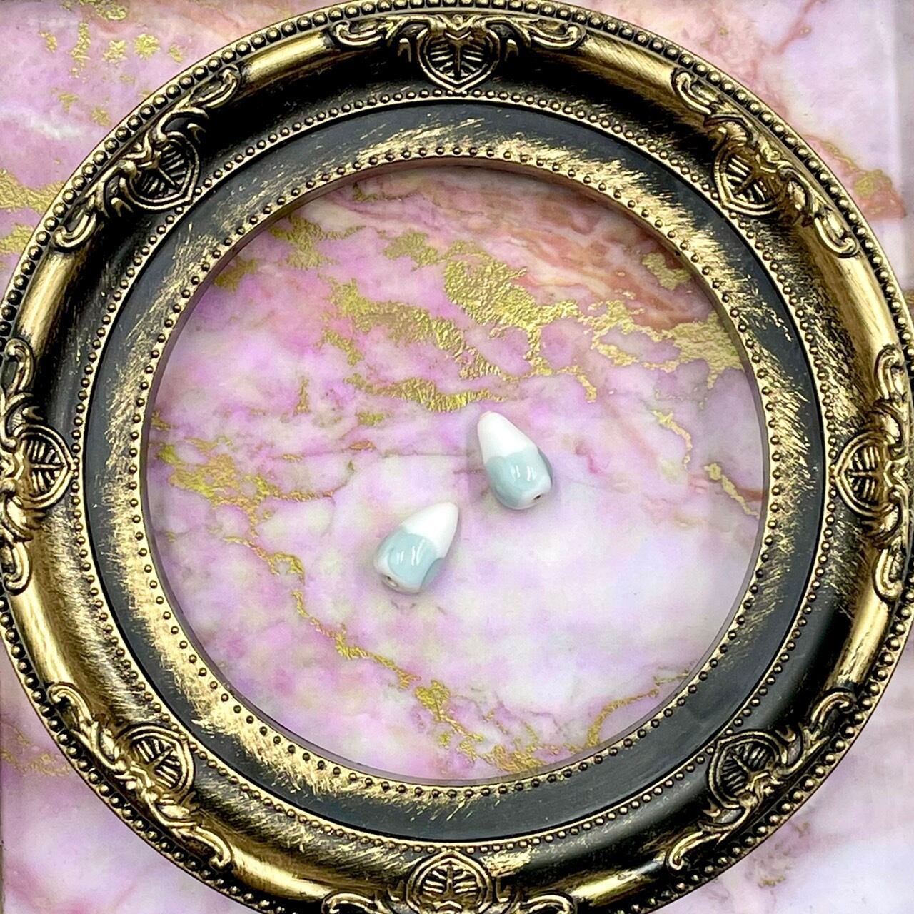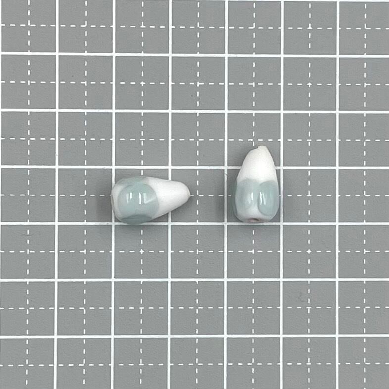 チェコ ランプビーズ ドロップ型12×8mm 2個セット   ホワイト&パステルグレー