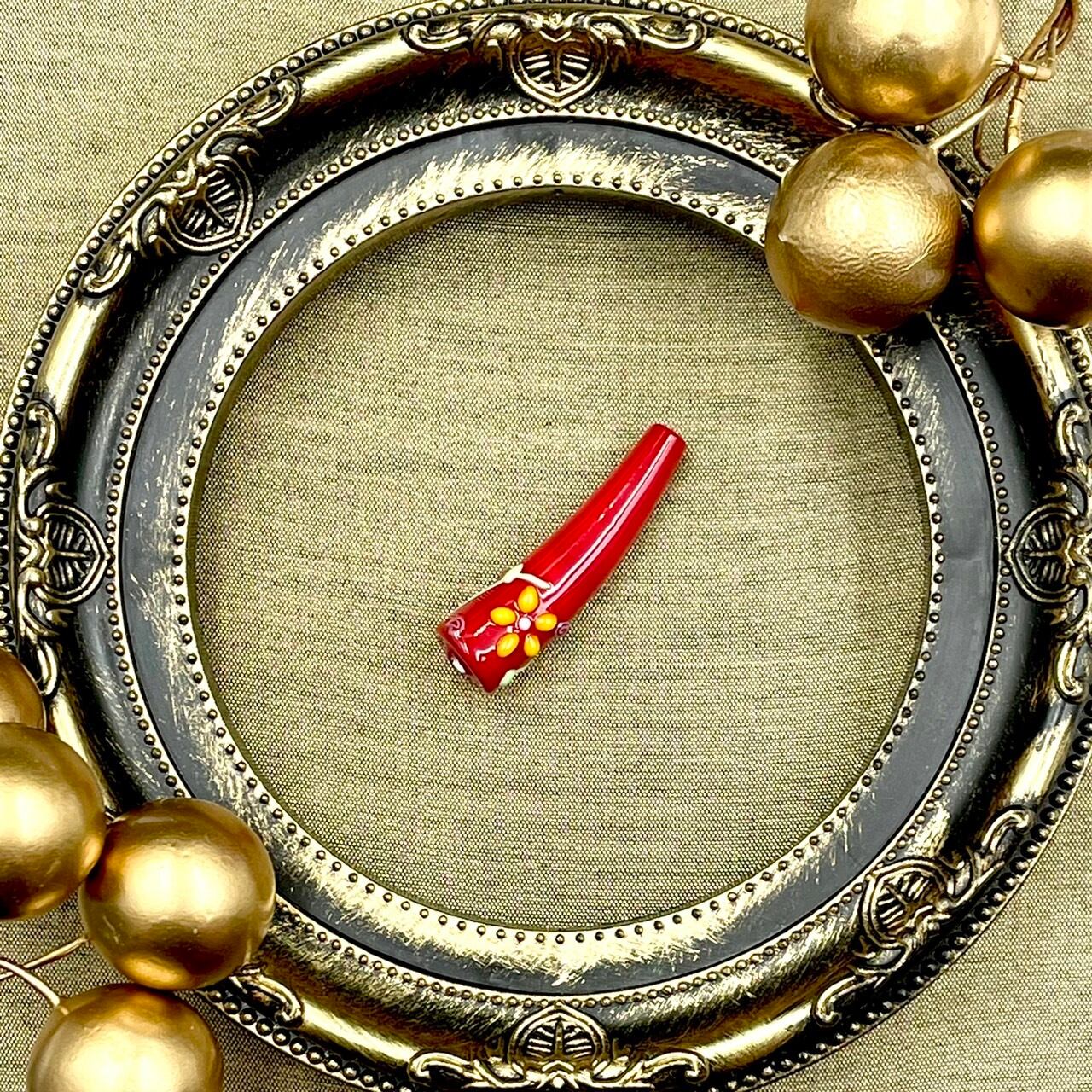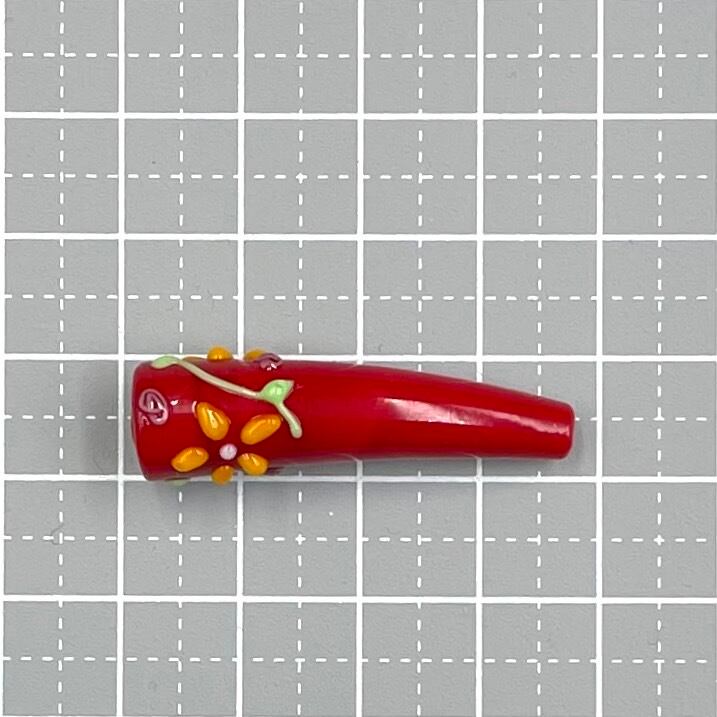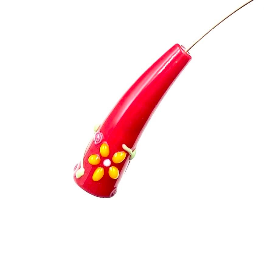 チェコ製のランプワークビーズ、珍しいクロー型です。お花のトッピングがとても可愛らしく、ペンダントトップにしても素敵です。サイズは縦約3.5cm、1個単位の販売です。