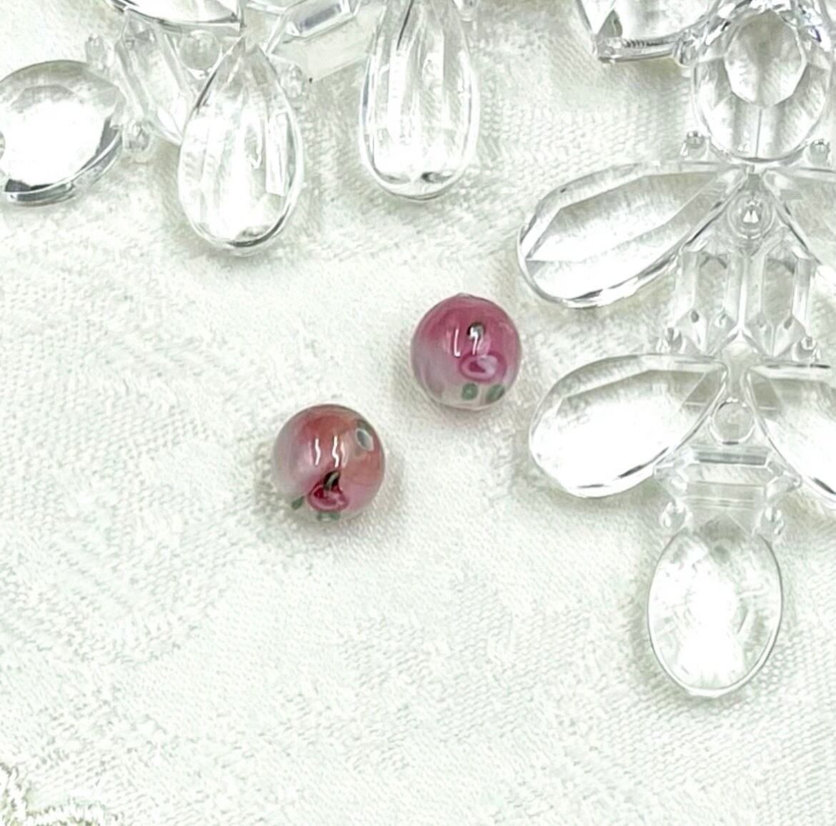 チェコ製のランプワークビーズ、代表的なローズ柄です。2色使いがとても可愛らしいです。8mmサイズで、小ぶりのイヤリング·ピアスにぴったりです。2個セット。
