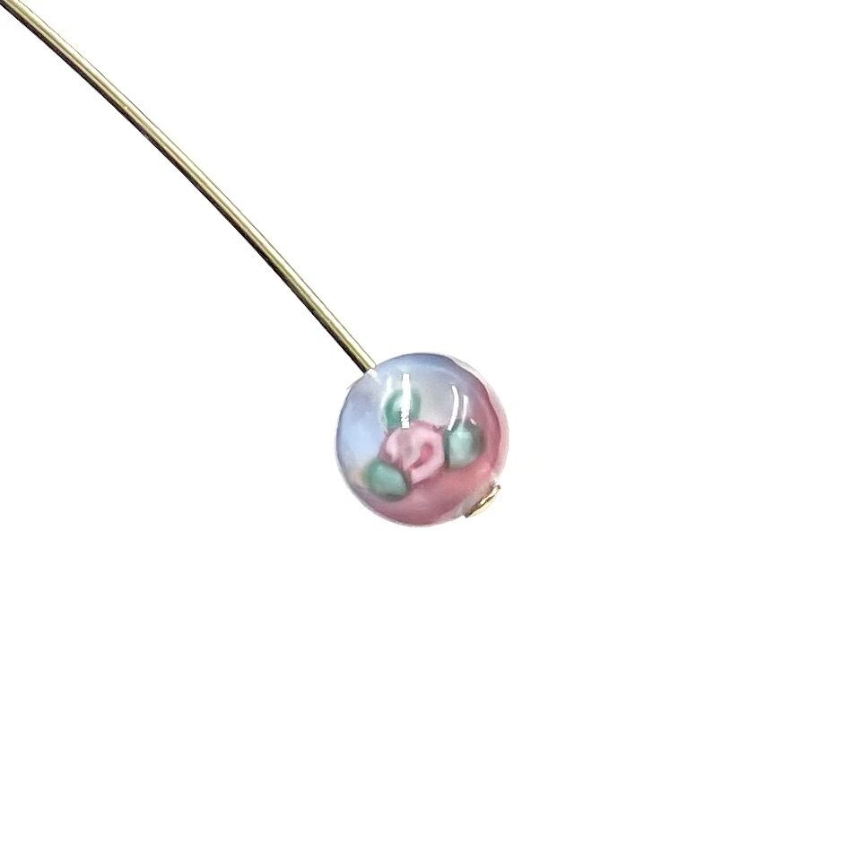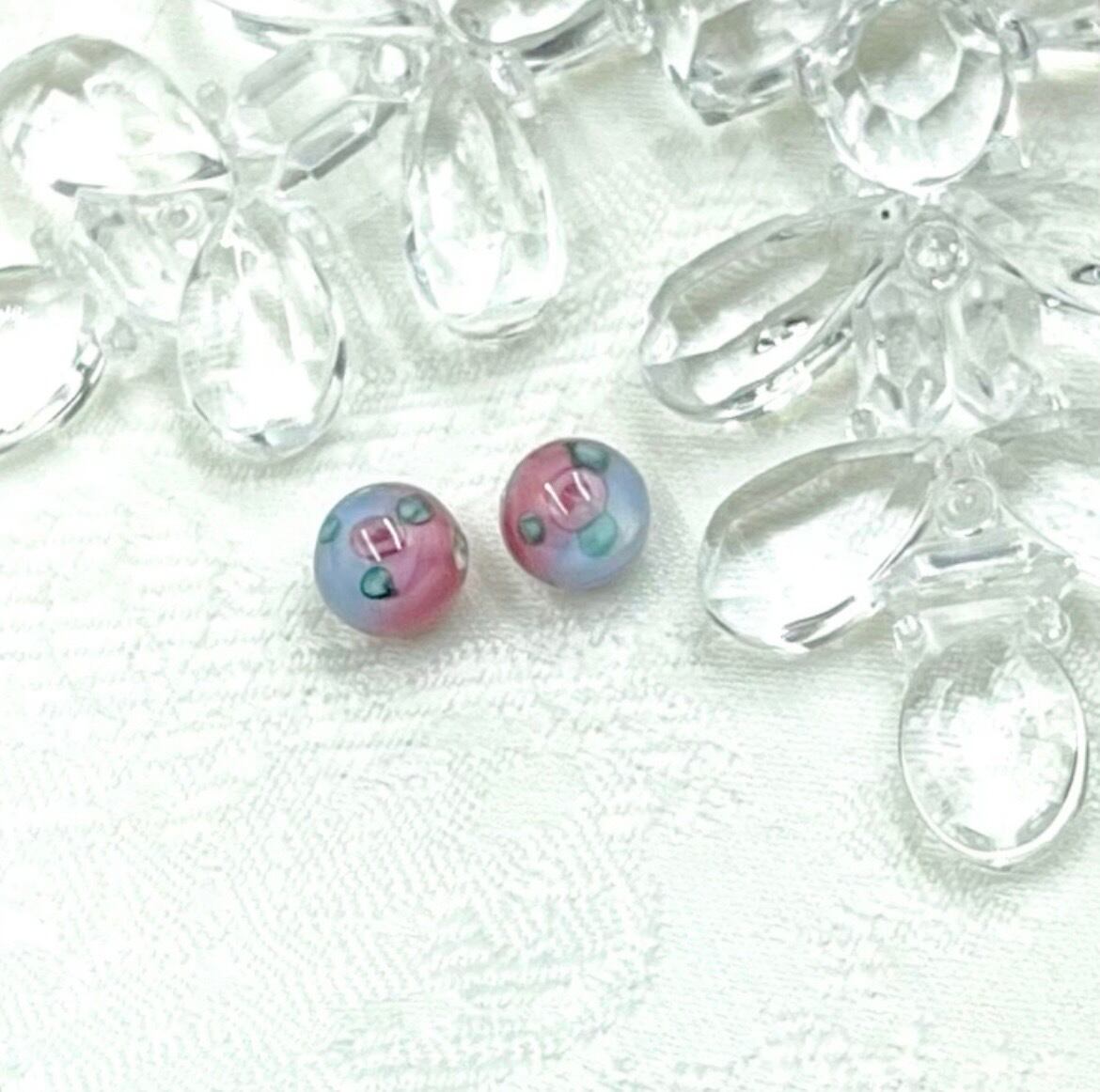 チェコ製のランプワークビーズ、代表的なローズ柄です。2色使いがとても可愛らしいです。8mmサイズで、小ぶりのイヤリング·ピアスにぴったりです。2個セット。
