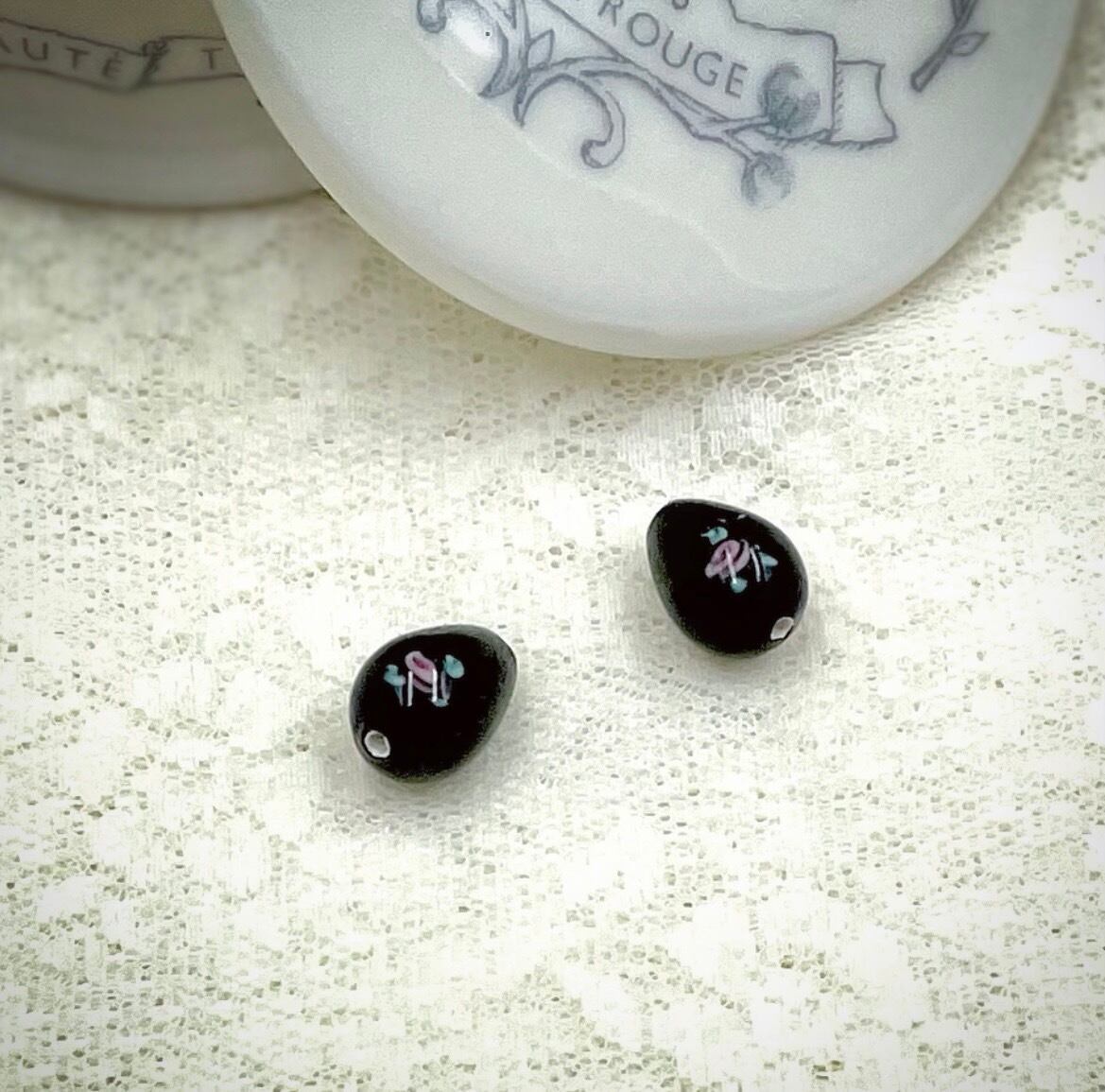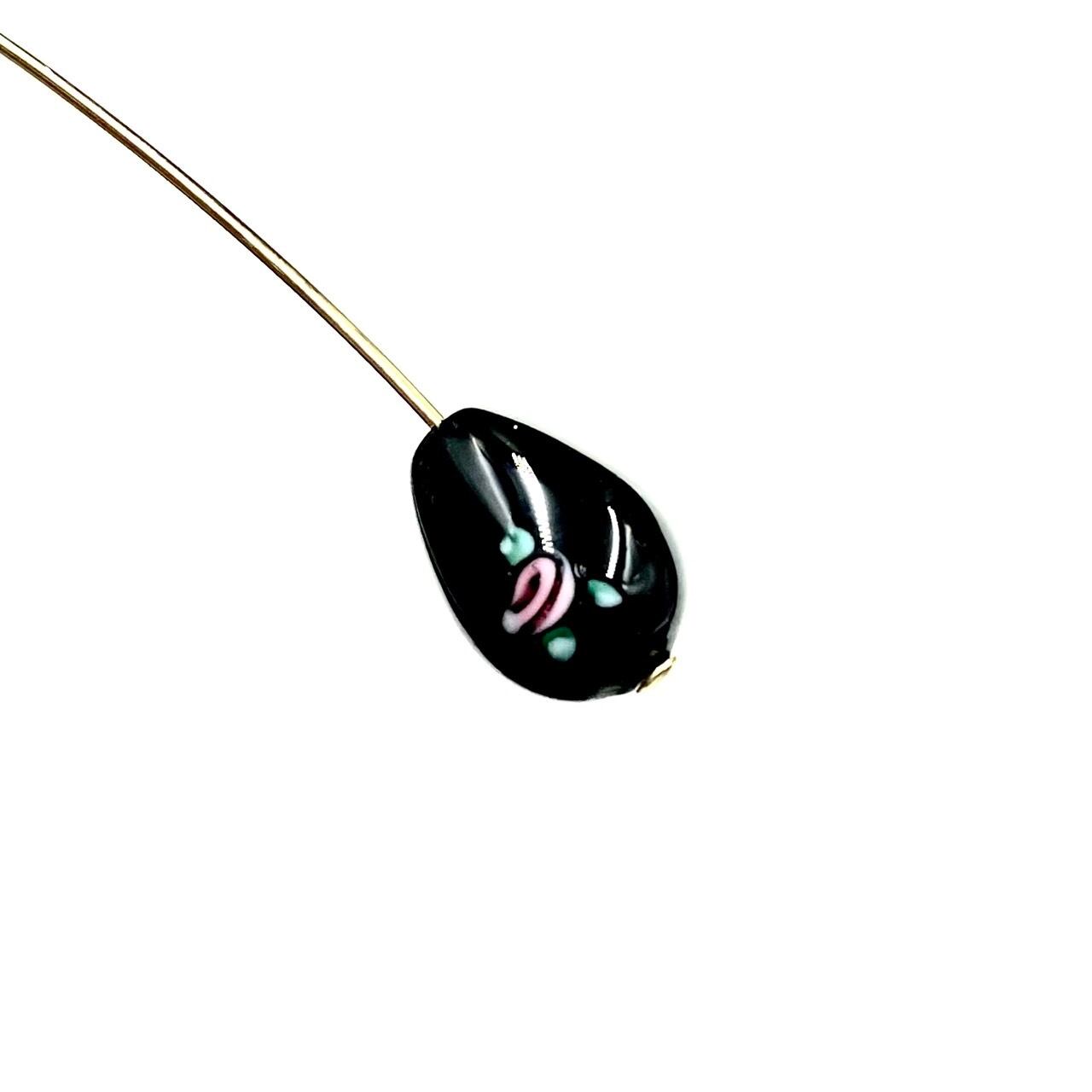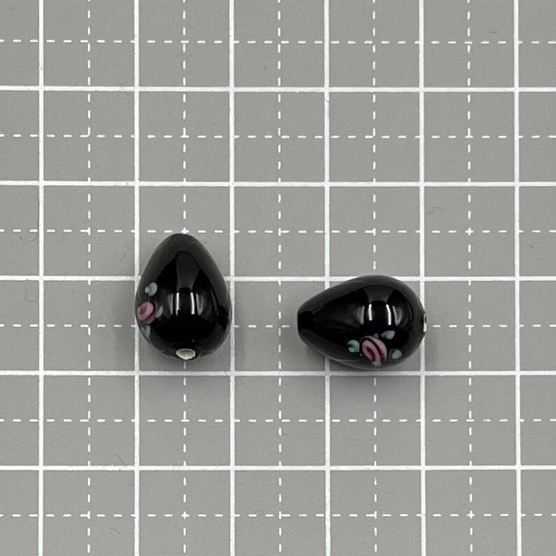 チェコ製のランプワークビーズ、代表的なローズ柄です。12mmのドロップ型は、イヤリング·ピアスにぴったり、小ぶりのペンダントトップにしても可愛いです。2個セット。