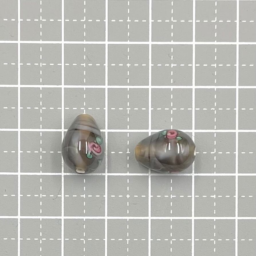 チェコ ランプビーズ ローズ ドロップ12mm  2個セット   グレー