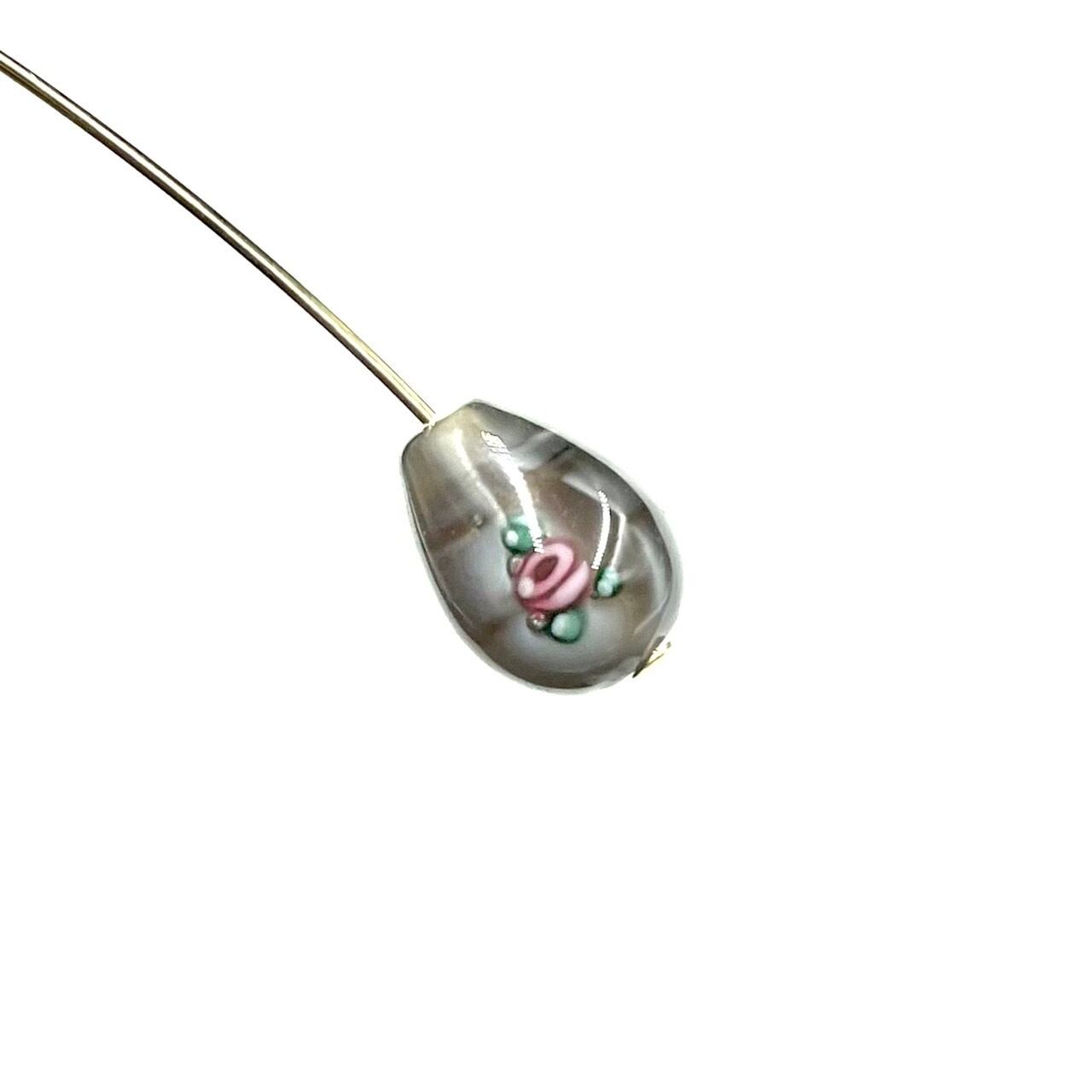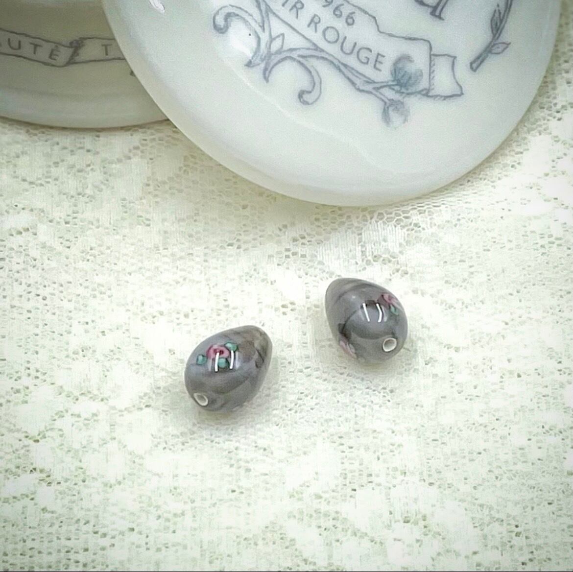 チェコ製のランプワークビーズ、代表的なローズ柄です。12mmのドロップ型は、イヤリング·ピアスにぴったり、小ぶりのペンダントトップにしても可愛いです。2個セット。