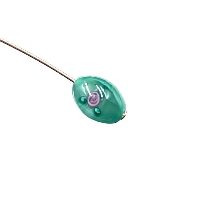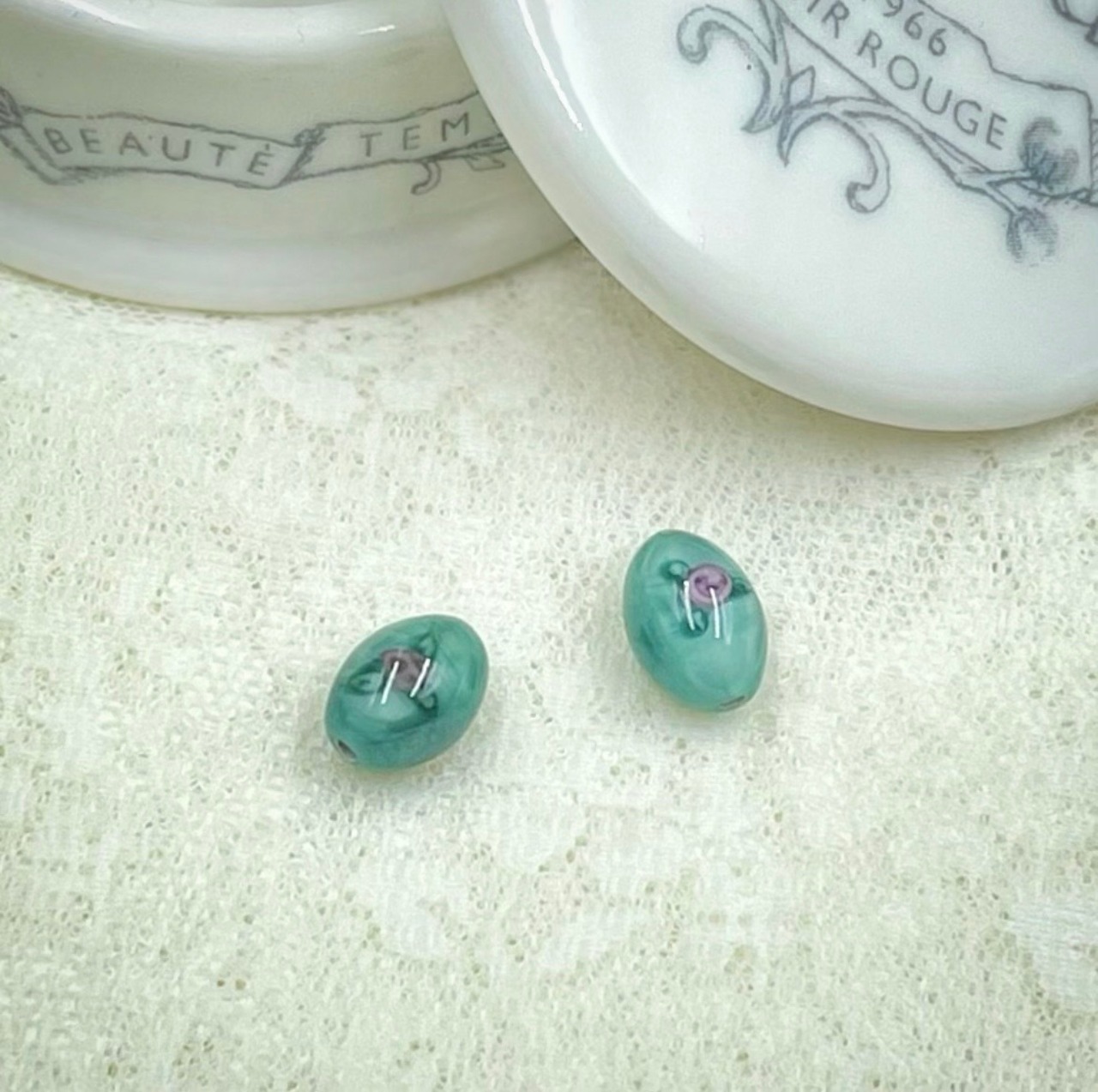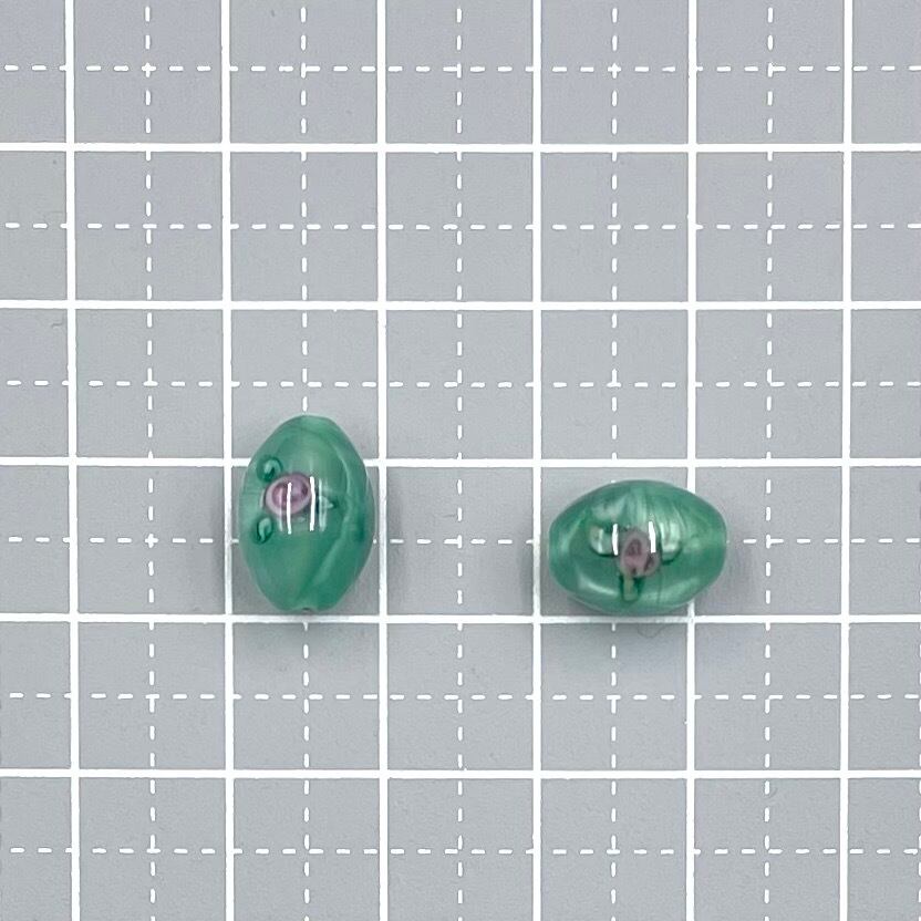 チェコ製のランプワークビーズ、代表的なローズ柄です。12×8mmのナツメ型は、イヤリング·ピアスにぴったり、小ぶりのペンダントトップにしても可愛いです。2個セット。