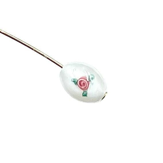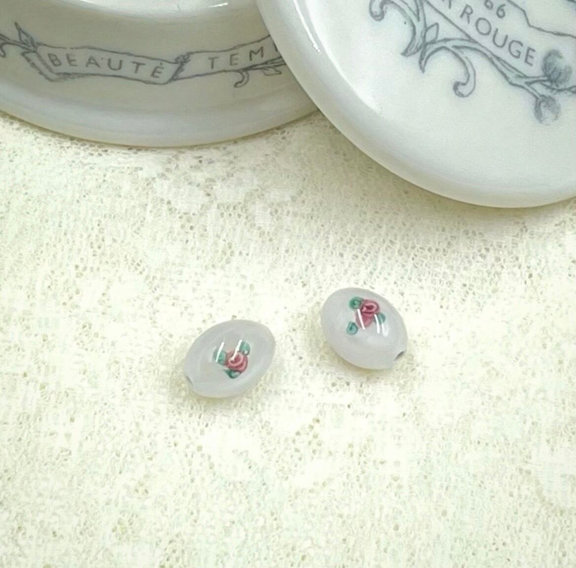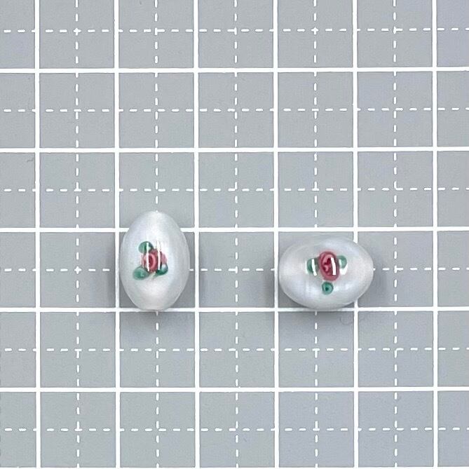 チェコ製のランプワークビーズ、代表的なローズ柄です。12×8mmのナツメ型は、イヤリング·ピアスにぴったり、小ぶりのペンダントトップにしても可愛いです。2個セット。