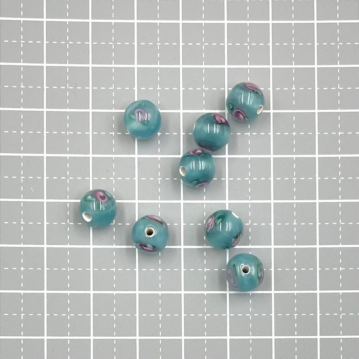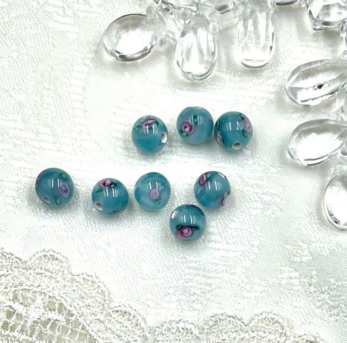 チェコ製のランプワークビーズ、代表的なローズ柄です。使いやすい8mmサイズの丸玉、8個セットでの販売です。