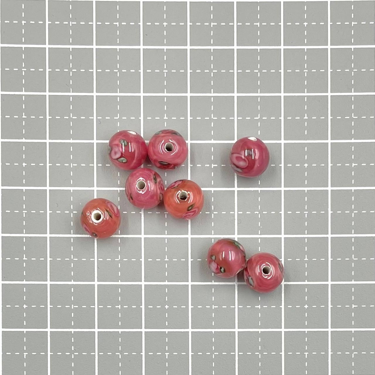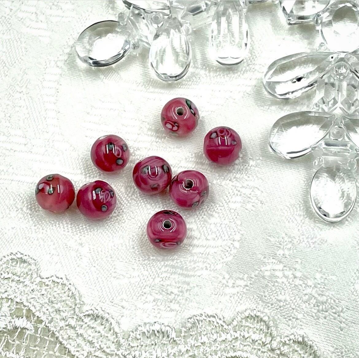 チェコ製のランプワークビーズ、代表的なローズ柄です。使いやすい8mmサイズの丸玉、8個セットでの販売です。