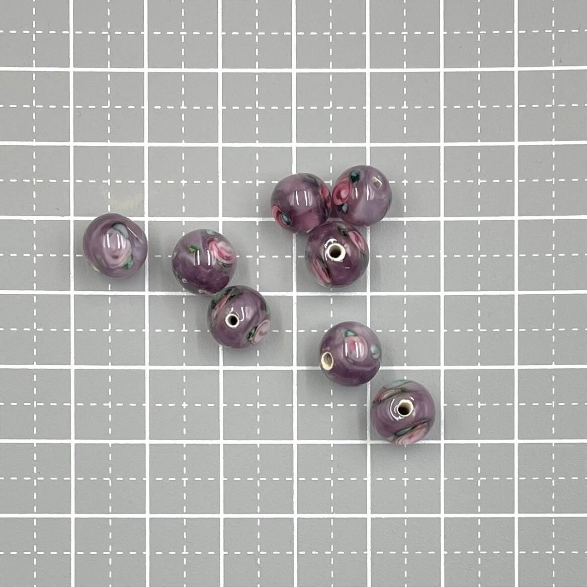 チェコ製のランプワークビーズ、代表的なローズ柄です。使いやすい8mmサイズの丸玉、8個セットでの販売です。