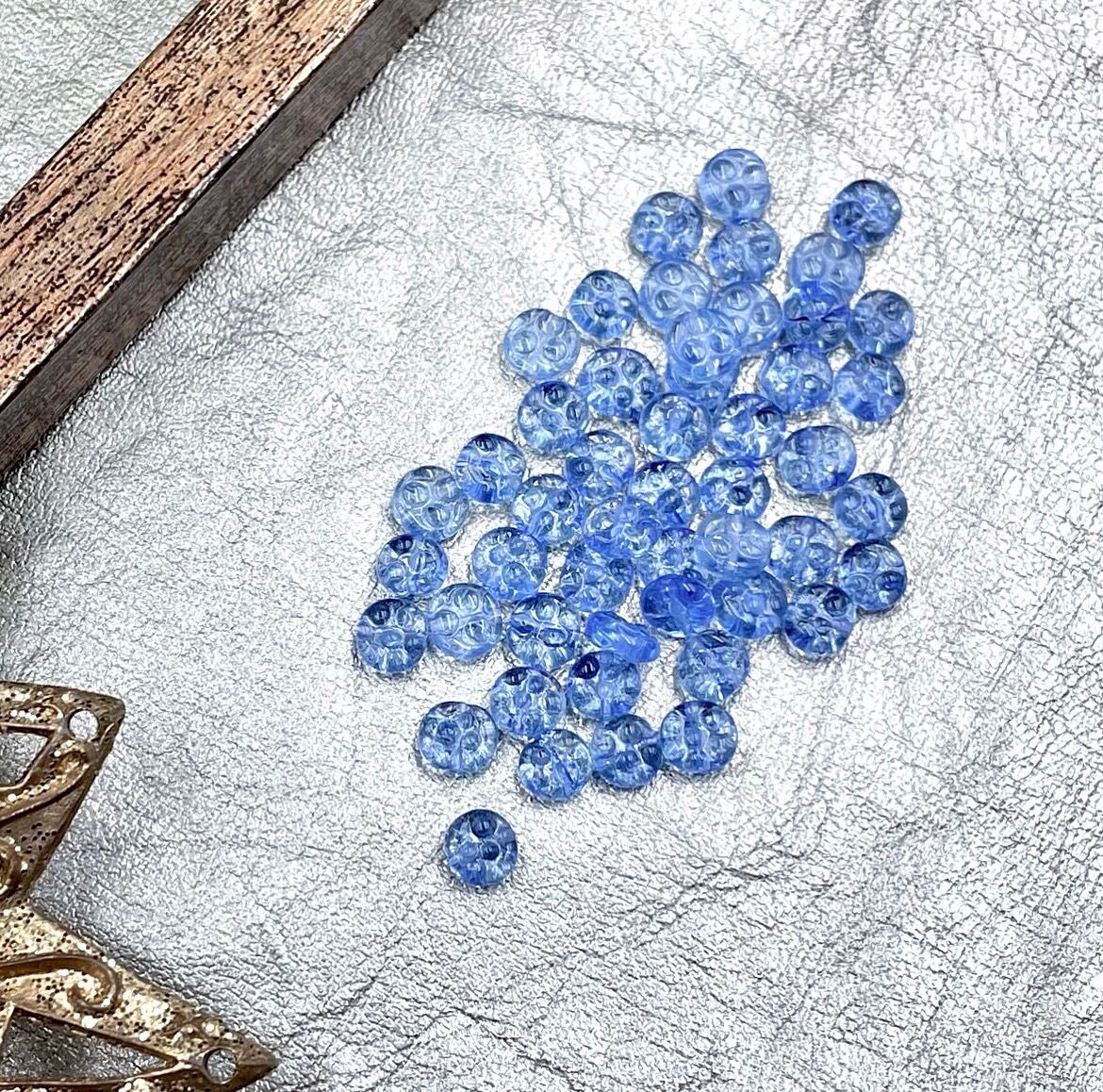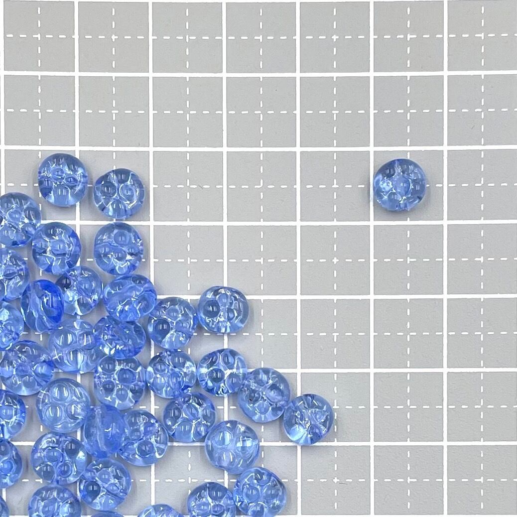 イタリア語で、‘押しつぶす’という意味のスキアッチャーレから名付けられたビーズです。平べったいおはじきのような形で、エンボス加工を施したような表面のでこぼこも特徴的です。サイズは約7mm前後、厚さは約3mm。50個セット、イタリア製。