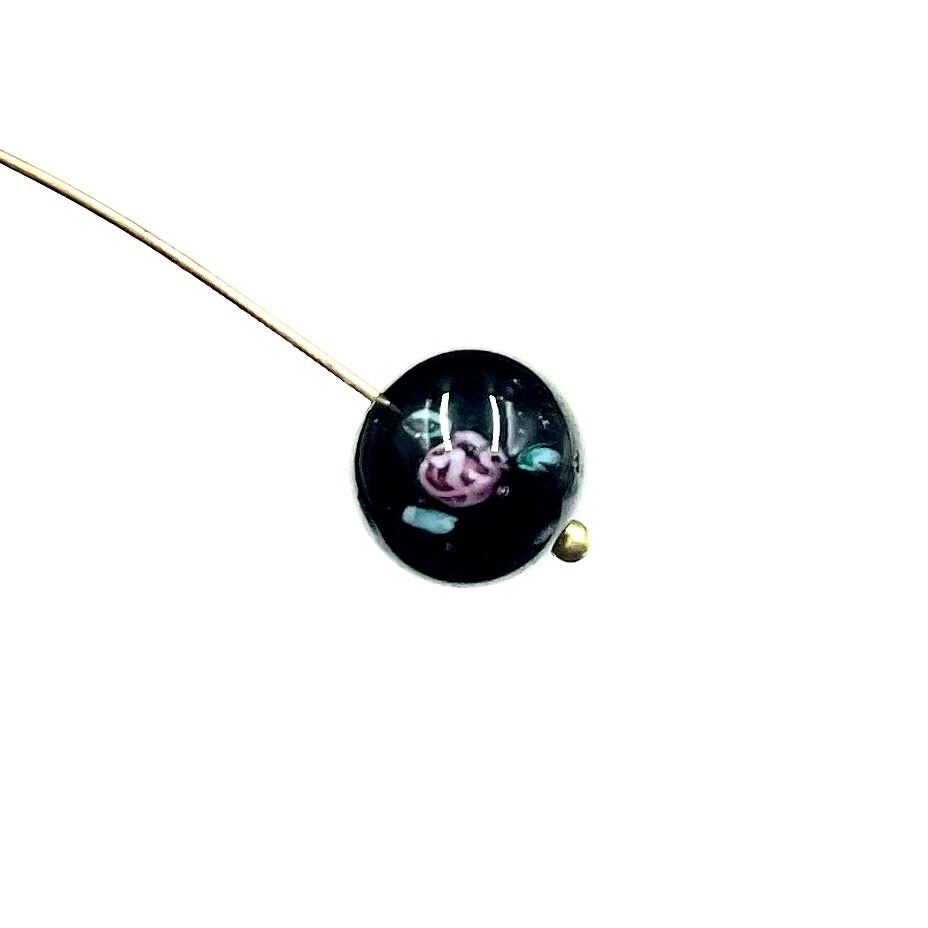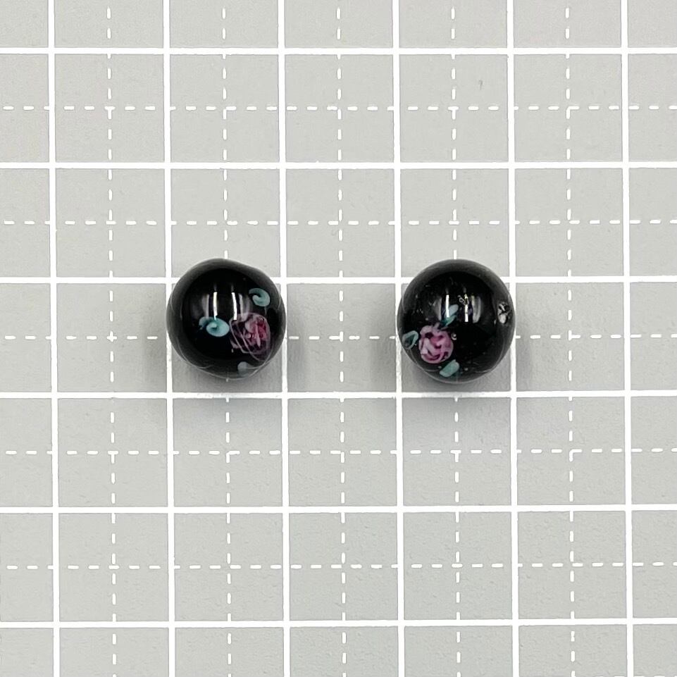 チェコ製のランプワークビーズ、代表的なローズ柄です。使いやすい10mmサイズの丸玉、2個セットでの販売です。