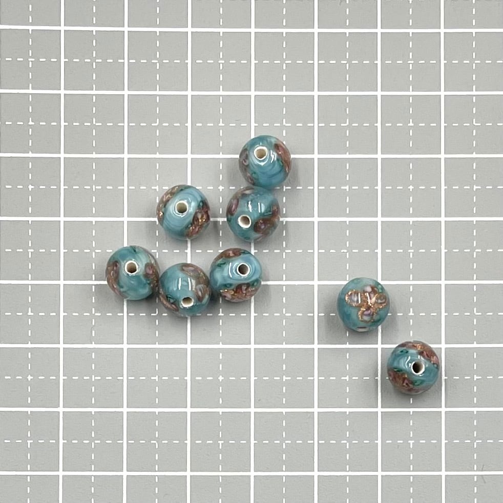 チェコ製のランプワークビーズ、花びらをアヴェンチュリンの枠で包んだ可愛いビーズです。使いやすい8mmサイズの丸玉、8個セットでの販売です。